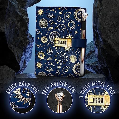 Return Policy Fast Delivery Trusted seller Navy Blue NightSky Diary with Lock , Gold Foil PU Leather Journal with Lock bundled Pen , Notebook with Lock , Lock Journal , Locking Journal , Locked Journal , Lockable Diary , Locking Diary Journal Product Description NAVY BLUE NIGHT SKY DESIGN: Our navy blue night sky book with lock sets are to you the best writing experience compared to any other journal on the market! With our journal locked set, you will be able to enjoy the 192 pages included that can be dedicated to any of your thoughts! With the beautiful design printed on the cover, our diary journal with lock will not leave you disappointed! COMBINATIONS: We value your information and believe it should not be seen by others unless it was intended! That's why our combination journals are perfect because you can customize the lock with hundreds of different passwords! MULTI-FUNCTIONAL: Use our locking journal for many different things - financial planning, personal writings, notes for class, practicing penmanship , and so much more! You can even bring this journal combination lock set in any setting you choose! BEST QUALITY: Each one of our nightsky journal with lock sets have goil foil printing on the front of each journal. Also, our navy blue nightsky locking diary is made of top grade PU leather that is built to last for longevity and great experience! With the ingenuity and hard work put inside of each journal, we can ensure satisfaction to all our customers! HOW TO USE: Please refer to 2nd image for directions or decription on functioning diaries. All of diary locking sets are made to satisfy all of our customers! Shop with confidence and purchase a locked diary set today! If not satisfied with your product, we will replace it with a smile! Shipping Returns Payment Shipping Shipping is FREE to all addresses other than APO/PO boxes in the lower 48 states. All our stock ships from US-based warehouses. Shipped via USPS or UPS (depending on location and package weight) Unless stated otherwise, all orders will ship within 24-72 hours of your payment being processed. Check our feedback to see the great reviews of FAST shipping we offer. Returns Seller does not accept returns Payment We currently accept payment via eBay managed payments only. Once payment is cleared, we will dispatch your shipment within 1-3 business days. Please refer to the "Shipping" tab for more information regarding shipping speed to your destination.