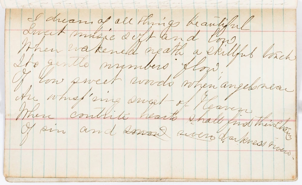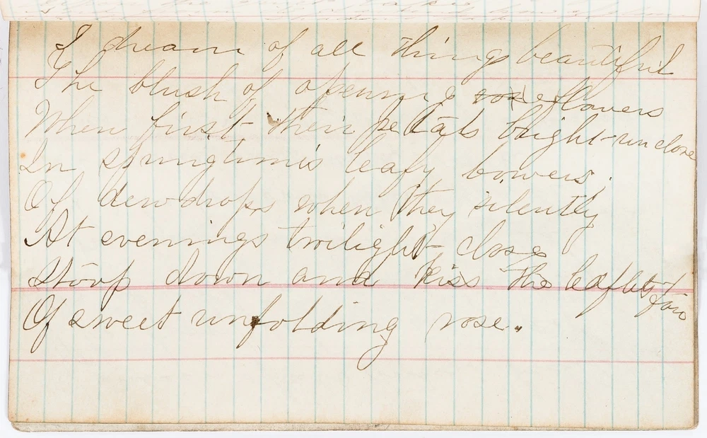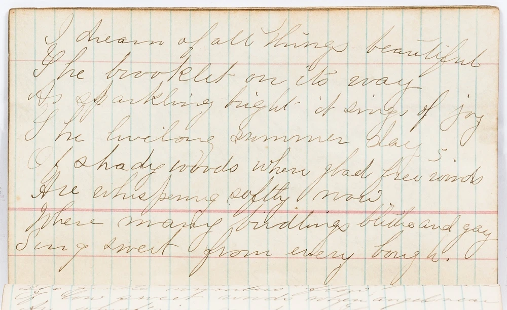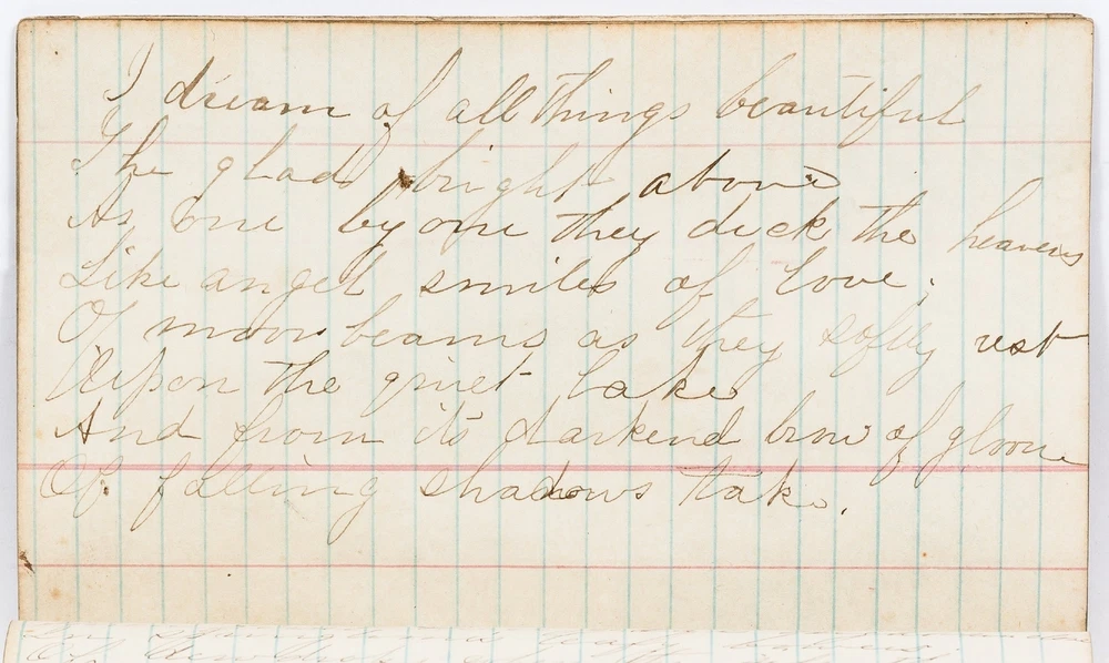 (Journal): A Young Girl's Personal Journal of Poetry and Illustrations from the Mid-19th Century Author: PRESTON, Nellie M. Title: (Journal): A Young Girl's Personal Journal of Poetry and Illustrations from the Mid-19th Century Publication: La Salle, Illinois: 1862 Description: Softcover. Young girl's journal with original poems and illustrations. 32mo. measuring 4.5" x 3". 28pp. Red leather flexible boards. Light wear on the spine and corners with a few pages cut out of the journal, very good. A young girl's journal with original poems, daily activities, and two illustrations from 1862. Nellie M. Preston lived in La Salle, Illinois attending music classes and shopping. Some of the things Preston purchased are written in the journal, "candies, music lessons, silk, gloves, china ointment, bonnet..." She also writes down the names of other people in her music class as well as the instrument they play, although she does not write her own. She has two illustrations one of which is a colored drawings of a doll, captioned "Maggie Maid of Hawthorne Dolls". The other is a sketch of a house at night with a boat floating down the Mississippi. Lastly there are a couple poems written by Preston, "I dream of all things beautiful... of dewdrops when they silently, at evenings twilight close, stoop down and kiss the beautiful fan, of a next unfolding rose." A short and charming journal of original poetry and artwork by a young girl in the mid-19th century. Seller ID: 419851 Subject: Art / Illustration, Poetry Between the Covers Between the Covers has been selling books for more than 30 years. Today we offer a wide ranging inventory, from Modern First Editions to General Used Books to Rare Archival Collections. We are active members of the Antiquarian Booksellers' Association of America (ABAA) and the International League of Antiquarian Booksellers (ILAB) . Terms All orders ship within two business days. Standard mail is USPS Media Mail. Expedited and international shipping are also available. We offer combined shipping on multiple orders. All books are guaranteed to be as described or they may be returned within 30 days of receipt for a full refund. This listing was created by Bibliopolis.