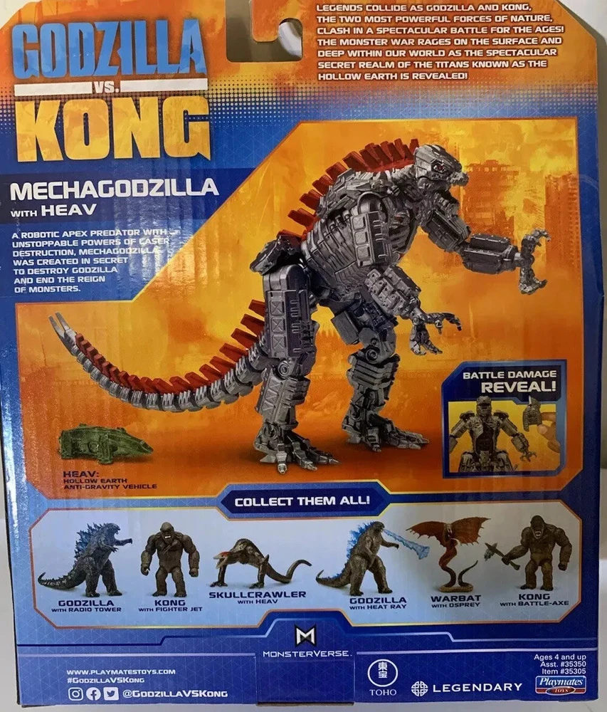 This is the toy you've been looking for. You can have your very own Mechagodzilla, as seen in the 2021 blockbuster hit, "Godzilla vs. Kong". The toy is brand new and unopened, just waiting to be added to your collection. It's 6 inches tall and made from plastic. It's an amazing addition to any movie and TV fan's collection, especially fans of the Godzilla franchise. The toy is perfect for children aged 5-7. Don't miss out on the opportunity to own a licensed reproduction of the iconic character.