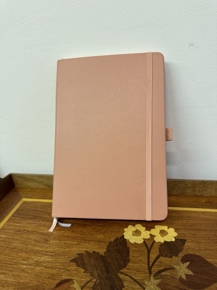 New unused Pink Leatherback Ruled Lined Journal. It has Index/Table of Contents Pages, a back pocket with organizer tabs, an elastic pen holder, an elastic band closure and two ribbon bookmarks....