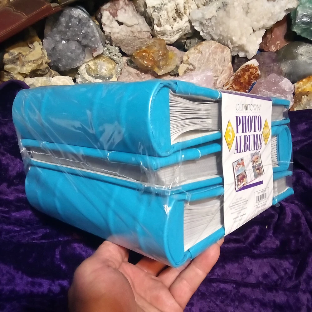 Up for sale is a rare turquoise blue three pack of Old Town photo albums...The albums are new and still sealed in plastic and are in excellent condition in my opinion. There sold as his, as pictured, please look carefully pictures. These will be double boxed and professionally packaged, also I have two shipping options available!