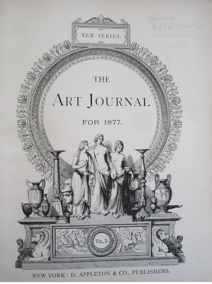 New Series The Art Journal for 1877 book Vol 5 D. Appleton & Co. Publishers New York. Hard bound leather over cloth, gilt 10 X 13 inches 384 pages. Fully illustrated: 31 Engravings on steel, 4 from Sculpture, 3 Full page Illustrations, plus numerous illustrations throughout. This includes all areas of art, fine and decorative arts. Includes numerous steel plate engravings with tissues, wood engravings, and other illustrations within the text. Includes such topics as: Household Art (home furnishings); British painters, antique gems, and includes the Centennial at Philadelphia & Paris Expo, all too much to list. The Art Journal, published in London, was the most important Victorian journal on art. It was founded in 1839 by Hodgson & Graves, print publishers, 6 Pall Mall with the title the Art Union Monthly Journal, the first issue, 750 copies, appearing 15 February 1839. The Art Journal became notable for its honest portrayal of fine arts. A wonderful reference for the artist, interior designer, architect, etc. For a better idea of the HUGE range of topics, look at the photos of the others that I have listed. They each weight almost 10 lbs. NOTE: I am listing several of these. Please let me know if you are interest in them for a combined price. Condition: Ex. Library with stickers in the front & foxing on the first few blank pages. Covers have rubs, binding is tight, & a little toning. Overall in very good condition. SHIPPING: US- included. (Postage will be combined for multi purchases.) ETSY bookandpapershop