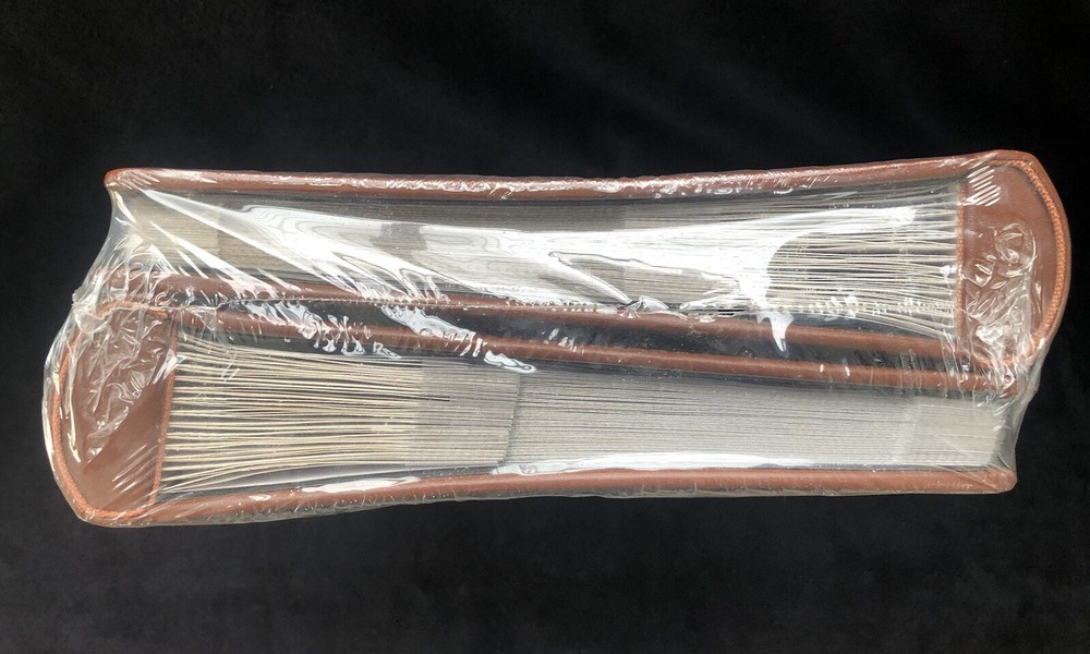 New Set Of Two Old Town Brown faux leather Photo Albums. The cover of each album holds 3 - 3”x3” photos. Each book holds 300 4”x6” photos each. The spine looks like vintage leather books. The plastic around the albums has a couple of breaks in it and looks like they may have let in a little debris. I also just noticed there is a little scratch on one of the spines on the top and bottom (see last 2 photos.)
