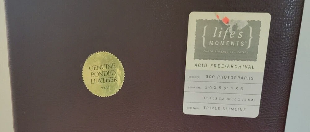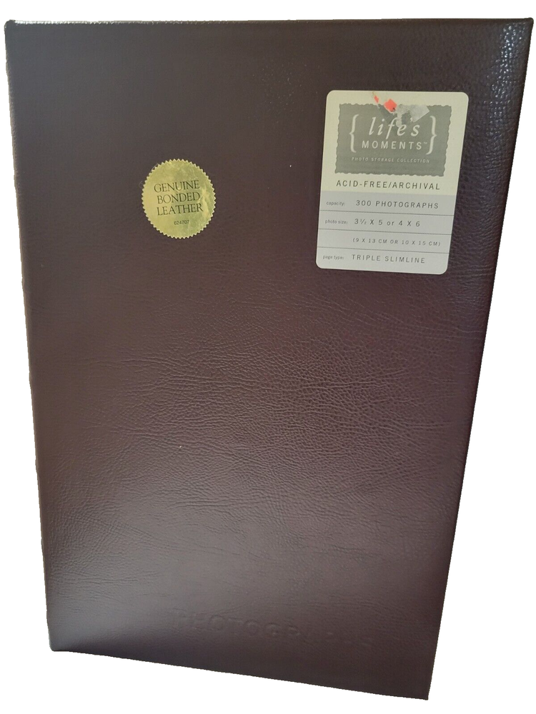 Life's Moments ACID-FREE/ARCHIVAL 300 PHOTOGRAPHS Triple SlimLine 3 1/2 x 5 or 4 x 6 Genuine Bonded Leather cover (P)...