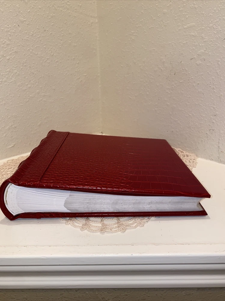 Brand New, Unused, Photo Album Holds 200 4” x 6” Prints. Made For Barnes & Noble. Very Nice Red Croc Leather. The Album Measures 8.5” High x 9.5” Wide. There Is Space To Write Notes By Each Photo. This Album Is In Excellent Condition With No Damage Of Any Kind. Carefully Packaged And Shipped Via The USPS Parcel Select Ground Mail.