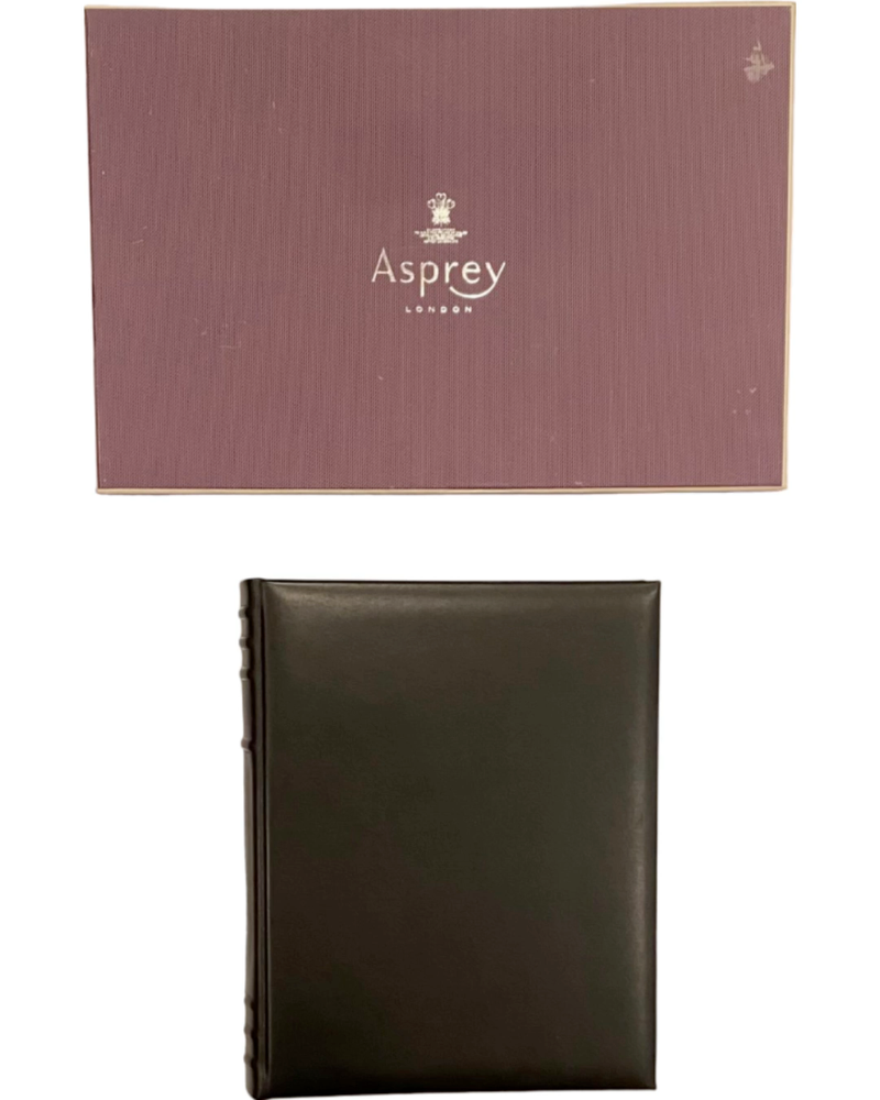 This New in Box Asprey London Black Leather Photo Album is perfect for any home and would also make a lovely gift! Details : Brand new in box black leather Asprey photo album Beautiful smooth leather with heavy stock paper and protective tissue between pages. Saddle leather binding Thread sewn binding Box has Asprey London tissue paper. Box has a few faint marks. Approx. Dimensions: 12.5" x 10" x 3" (Album); 15.5" x 10.5" x 3.5" (Box) *Please feel free to browse our wonderful selection of vintage barware items for sale!* **PLEASE READ** *ALL SALES ARE FINAL-NO REFUNDS/RETURNS/CANCELLATIONS ACCEPTED* -Should you have any questions, please feel free to ask BEFORE purchasing. Payments must be made in full through PayPal before an item(s) can be shipped. *HANDLING TIME* -3 Business Days-I will only ship to the address you have provided through eBay. If you would like me to ship to a different address, you will need to update through eBay BEFORE purchasing. *INTERNATIONAL SHIPPING* -If you live outside the U.S., I will carefully pack & ship your item(s) using eBay's Global Shipping Program. If you have any questions, please refer to eBay's Global Shipping page.