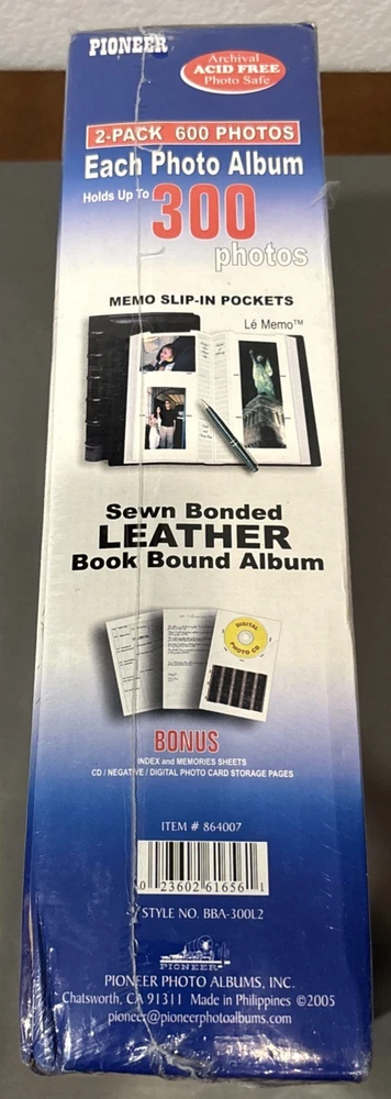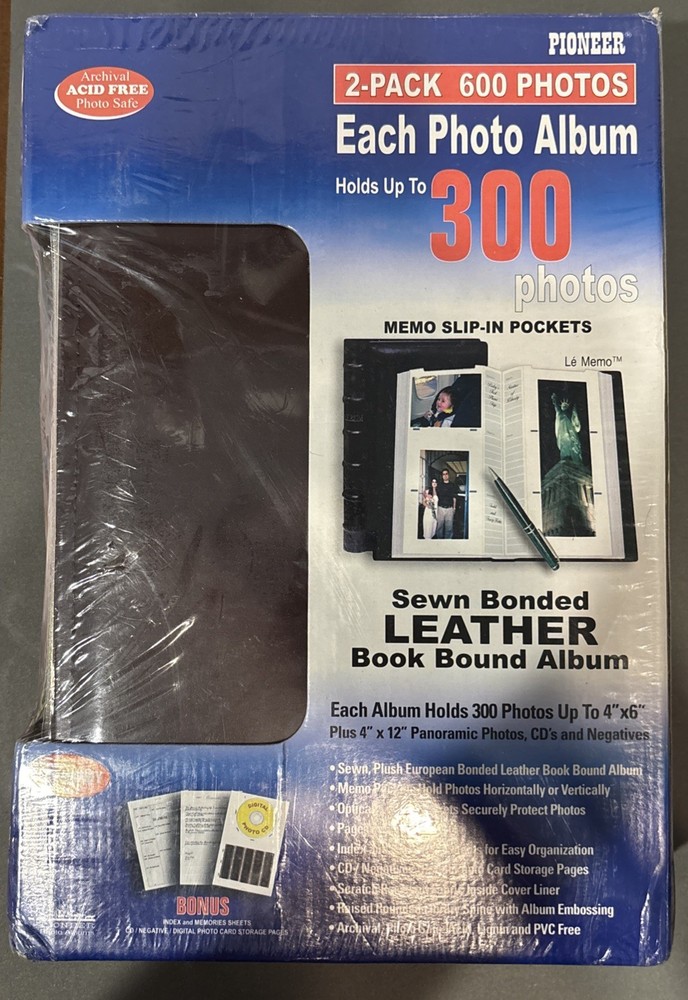 Preserve your memories with the Pioneer 2-pack slip-in photo albums, crafted from high-quality sewn bonded leather in a rich burgundy hue. Designed to hold up to 300 photos each, these book-bound albums are perfect for safeguarding your cherished moments in a durable and classic format. The albums accommodate photos up to 4” x 12”, ensuring a variety of picture sizes can be elegantly displayed. With a versatile general theme, these albums are suitable for any occasion. Whether you're capturing family events, special occasions, or artistic landscapes, these photo albums will be a timeless addition to your keepsakes. The item pictured is the exact one you will receive. Please reach out if you have any questions. Item will ship via USPS Ground Advantage.