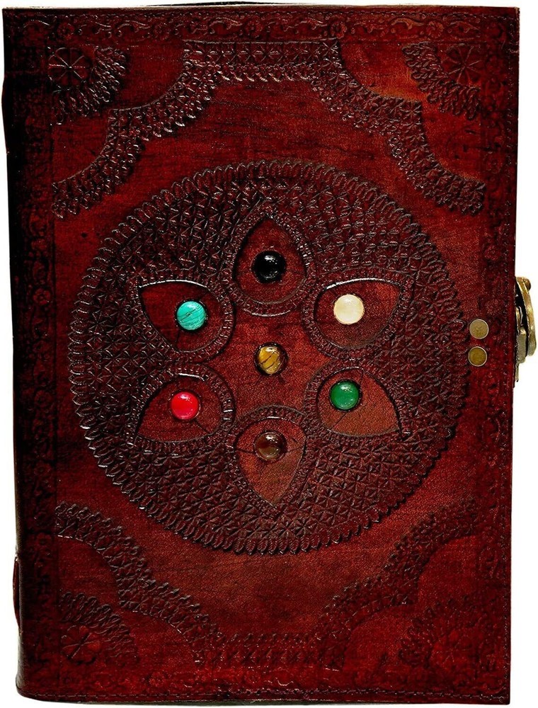Handmade Mosaic brand journal size - 10x7x2 inch 7 X 10 Inches Perfect Sized Handmade Journal , this easy to carry personal diary is perfect to use as a health journal, sketchbook, dream journal and poetry journal 120 Sheets (240 pages counting both sides) handcrafted paper manufactured using Cotton Bio-Mass. Which are also acid-free? It is beautiful handmade leather journal with plain lined paper and lock journal easy to use which is very well designed by our artist and well embossed notebook ( Stone color may change ) A journal is like a trusted companion. Be creative or record precious memories in order for them to last a lifetime Use any pen on this thick quality paper – EASY FOR HANDWRITING, DRAWING OR SKETCHING and compact for carrying in your bag. IDEAL FOR Artist Sketchbooks, Photo Album, Traveling Notes, Business Executive, Hunting Logbook, Poetry Work, Journalists, DND Notebook, Weekly Food Planner, Instagram Scrapbook and Bible Journaling Crafted by professional and experienced artisans from Rajasthan. A genuine hand made product using Natural leather. Natural oils and light have been used to obtain the style of the leather - chemical free! The tonality color of each bag might vary in accordance with the low and high temperatures from the heart of The Thar desert. The leather does not receive any chemical treatment. Each Product has its charm and style and a very special earthy smell that will assure you it's real leather. This old-fashioned character leather has an amazing smell! Can be used as a notepad, Journal, Writing Notebook, sketchbook. 1.5-inch thickness, easy for handwriting, drawing or sketching and compact for carrying in your bag. Ideal for alternative Artist Sketchbooks, Photo Album, Traveling Notes, Business Executive, Logbook, Poetry Work, Journalists, Food Planner, Instagram Scrapbook and Bible Journalism.