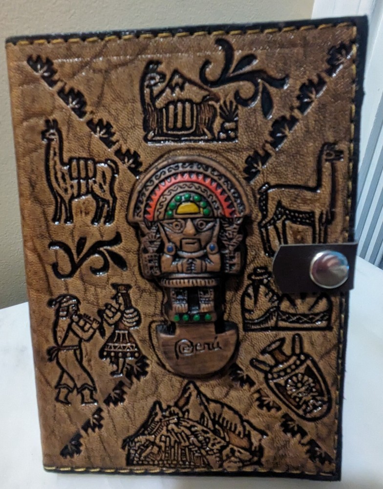Beautiful Handmade Leather Bound Notebook from Arequipa Peru is the perfect addition to any collection. The intricate designs on the cover are a tribute to the rich Peruvian culture, making it a unique and special item. Inside are lined pages, whether you plan to use it for journaling, sketching, or as a decorative piece, it is sure to impress.