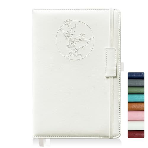 Notebook Journal for Women Men,256 Pages A5 Hardcover Leather White Magnolia