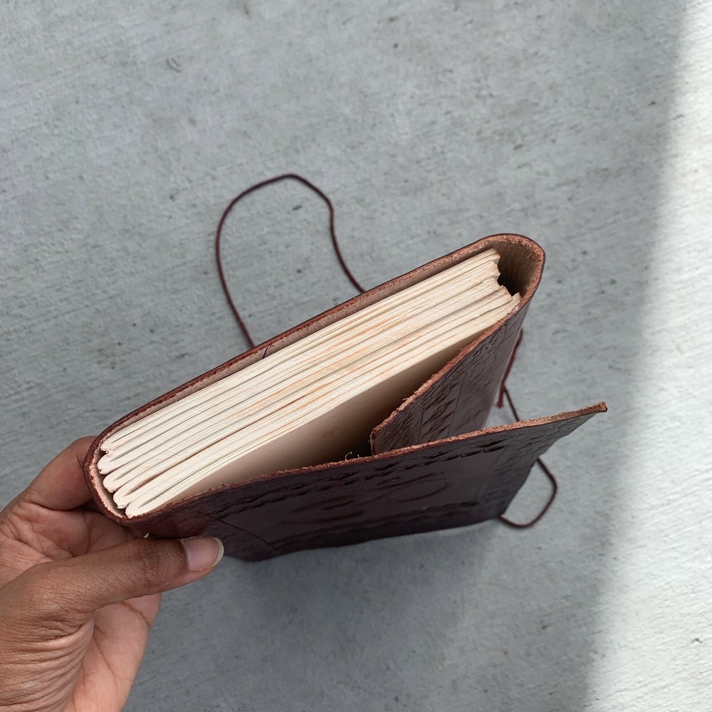 They contain hand made paper which is woven into a book. The Leather cover contains embossed OM, AUM, OHM design. The paper is naturally treated cotton paper which are best suited for writing, noting, jotting, sketching, doodling etc. Product Dimensions: Length - 8 in * Width - 6 in these are ready to ship items and will ship within 1-2 business days. If you are an international customer, then I suggest to upgrade to Priority mail so that you can get the tracking number to track the shipment. PLEASE NOTE: If you wish to purchase more than one item at the same time, please send me a message to request if I could do a combined shipping cost.