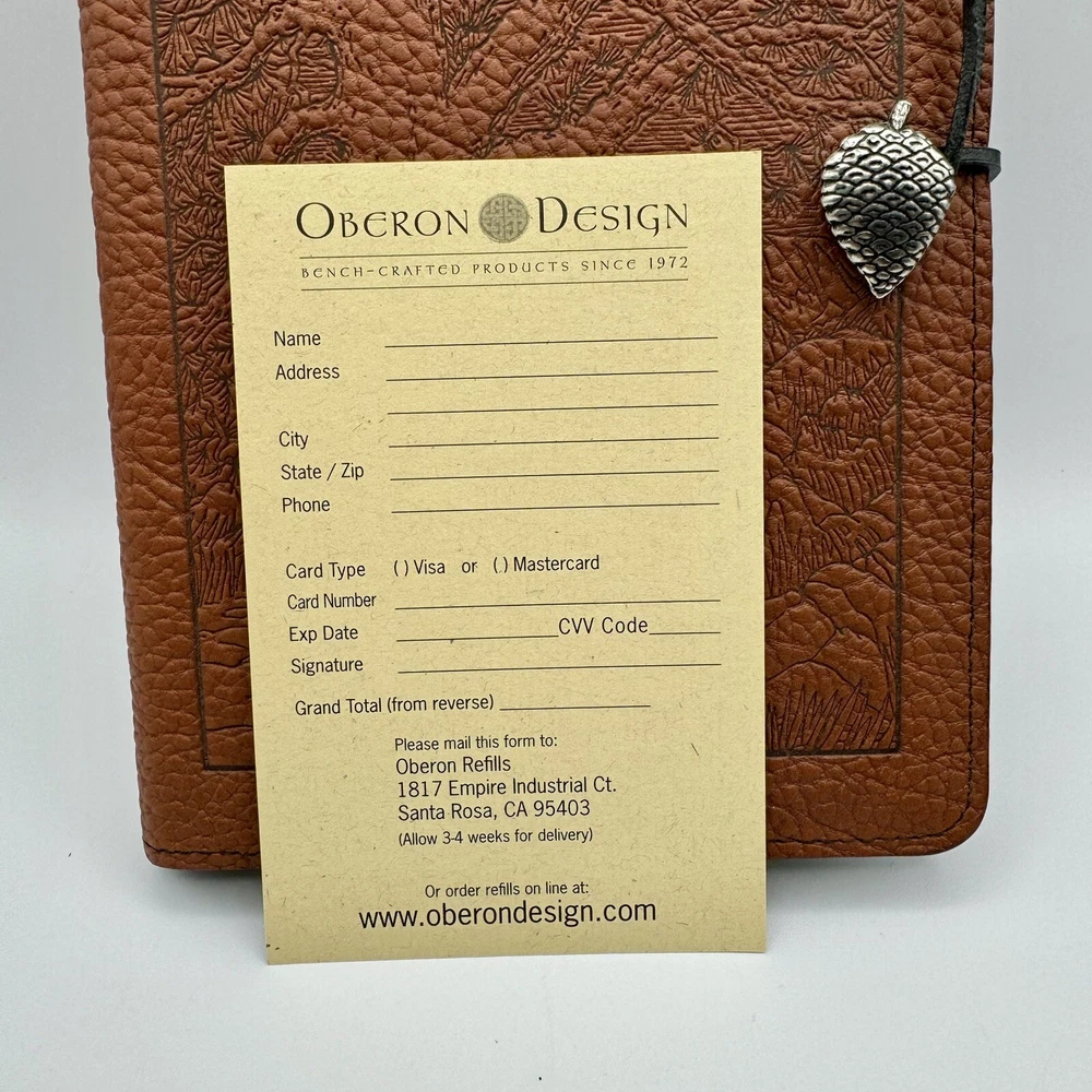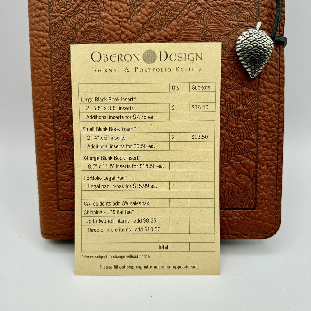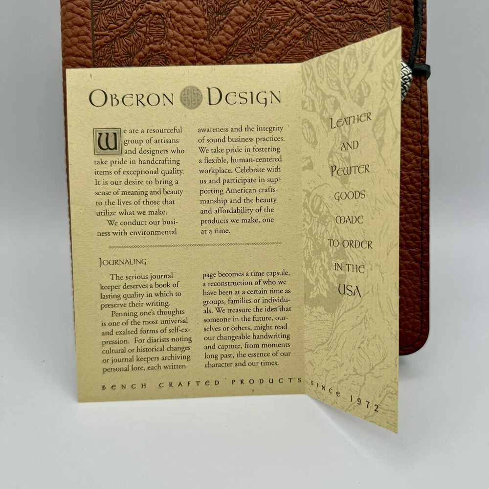 This Oberon Design refillable journal is the perfect addition to your collection. Made with genuine leather and crafted in California, USA, this luxury edition cover is durable and stylish. The plain ruling type and brown color make it a versatile choice for any business or personal use. Measuring approximately 9in x 6in, this cover features a hard cover and is signed with the Oberon Design brand. The special attributes include a rulied paper template and handcrafted design. This listing is for one item and does not include personalization. Get ready to fill your journal with creativity and imagination and make it a part of your collection today.