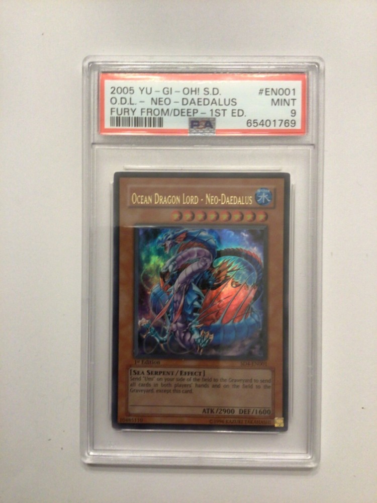 This rare and highly sought-after card is a must-have for any serious collector or Yu-Gi-Oh! TCG enthusiast. With its stunning illustration and powerful abilities, the Ocean Dragon Lord - Neo-Daedalus card is sure to impress.Featuring a Water attribute and a Sea Serpent creature type, this Ultra Rare card from the Structure Deck: Fury from the Deep set is a true gem. It boasts a high defense/toughness of 1600 and a powerful attack/power of 2900, making it a formidable addition to any deck. Plus, it's in English language and is certified with the number 65401769. Don't miss out on this opportunity to own a piece of Yu-Gi-Oh! history.