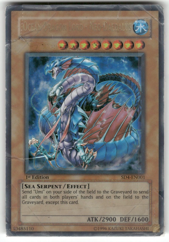 You will receive a Heavily played, Ocean Dragon Lord Ultra Rare Yugioh SD4-EN001 Structure Deck: Fury from the Deep 2005 card Please note, I am not a professional graders and the condition of a raw card is highly subjective. Please refer to the high quality scans of the card included in this listing to determine the condition of the card for yourself. Any questions, please just ask! All cards are in EX - NM+ condition, unless stated otherwise. Holographic cards might have minor light surface scratches, which is typical with these types of cards. Any major, deep scratches will be noted, if present. I take pride in the condition of all my cards, including commons. Our promise to you is, we would not sell a card in a condition we would not want to receive myself! I are also very proud of our shipping standards, and all cards, including commons will come in a penny sleeve and very well protected! Please check out our other Trading Card listings, as the more you buy, the buy you save! Be sure to save me as a Seller, as I am always growing, and listing cards daily!