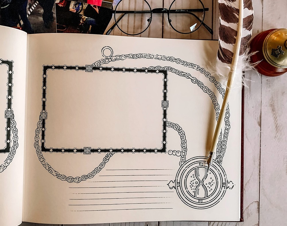 Inspired by the photo album that Hagrid gave to Harry in Harry Potter and the Sorcerer’s Stone, our new Harry Potter photo album and scrapbook is a beautiful vegan leather post-bound album that will become a treasured keepsake just like Harry’s! A Hogwarts gold-debossed crest glimmers on the front cover and within are 80 pages of thick, archival quality photo pages for your magical memories. The first spread is an inspired replica as seen in the movie and the additional pages include Wizarding World themed pages featuring spells, Quidditch, Hedwig and more! A sticker sheet is included as well as a full page of 100 traditional photo corners! The Album Hagrid Gave Harry: Inspired by the photo album Hagrid gave to Harry in Harry Potter and the Sorcerer's Stone, our new Harry Potter photo album and scrapbook is a beautiful vegan leather, post-bound album that will become a treasured keepsake just like Harry's! Classic Wizarding World: A Hogwarts gold-debossed crest glimmers on the front cover and within are 80 pages of thick, archival quallity photo pages for your magical memories. The first spread is an inspired replica as seen in the movie and the additional pages include Wizarding World themed pages featuring spells, Quidditch, Hedwig and more! Thoughtful Details: Each album includes a full page of 100 traditional photo corners to secure your magical photos on the pages. An additional sticker sheet includes iconic Wizarding World images to sprinkle throughout. The post bound construction allows you to remove pages to work on layouts and organize your album pages. Perfect for Every Harry Potter Fan: Whether it's trips to the Wizarding World or dinners at home with your family, all of your magical memories and moments can be celebrated and preserved in this archival quality album! Dimensions: Album: 9'' x 11.5''; Pages: 8.5'' x 11''. Photo Spot Sizes: 8 3.75'' wide x 2.75'' tall, 24 horizontal 4'' x 6'' boxes, 32 vertical 4'' x 6'' boxes, and 48 4'' x 4'' squares. Journals Officially Licensed Fan Art: We are a US based Majority Female Owned small business creating premium licensed products for fans like us!