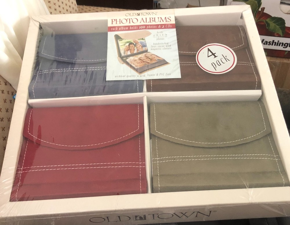 Old Town 4" x 6" Hand Stitched Faux Suede Photo Albums, Assorted Colors (4-Pak) its beautiful for all memories. New in box...