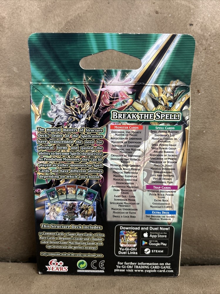 Factory sealed, may have some shelf wear and small slight outer packaging dings. the Order of the Spellcasters Structure Deck for Yu-Gi-Oh! is a must-have for any card game enthusiast. This 1st Edition deck features English language cards made of high-quality card stock, and is packed with Japanese-sized cards from the manufacturer Konami. The deck is a Pack configuration from the Collectable Card Games category, offering players a diverse range of cards to enhance their gaming experience. Perfect for collectors and players alike, this Structure Deck is sure to bring excitement and strategy to your Yu-Gi-Oh! battles.