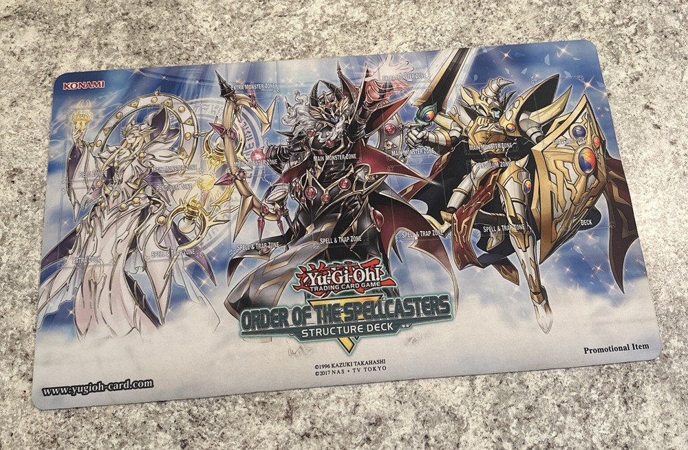 This exclusive Win-A-Mat playmat is a must-have for any Yu-Gi-Oh! fan. Made of high-quality rubber, it provides a non-slip backing for your cards and features the iconic Order of the Spellcasters design. Usable as a mousepad and promo item, this standard playmat is perfect for CCG playters and collectors alike. With its Structure Deck designation, this playmat is a unique addition to any collection. Whether you're a fan of the TV show or the franchise, this item is sure to impress. So don't miss out on your chance to own this rare and functional playmat.