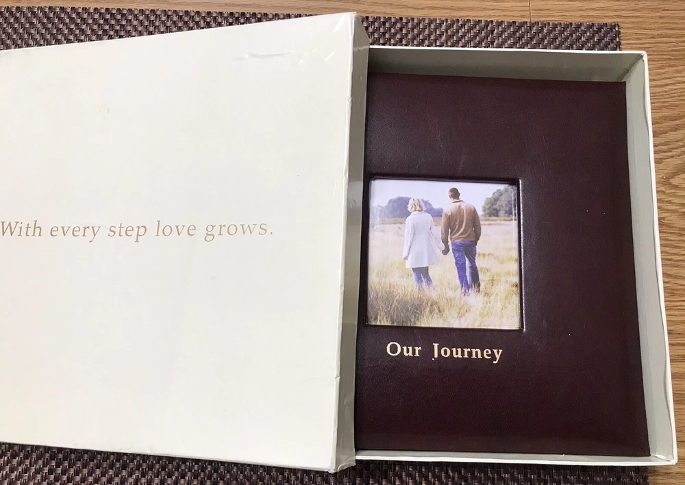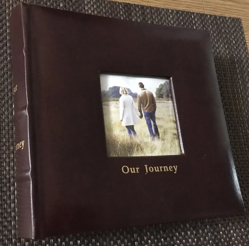 Preserve your precious memories in style with this stunning slip-in photo album. Designed to hold 192, 4 x 6 inch photos in 48 pages, this book-bound album is perfect for showcasing your favorite family moments. The faux leather cover in a beautiful burgundy color adds a touch of elegance to your collection. Featuring the heartwarming phrase "With Every Step Love Grows" and on the cover “Our Journey”, this photo album is a wonderful way to capture and cherish your family's journey together. Whether you're looking to organize your memories or gift it to someone special, this album is sure to be a cherished keepsake for years to come.