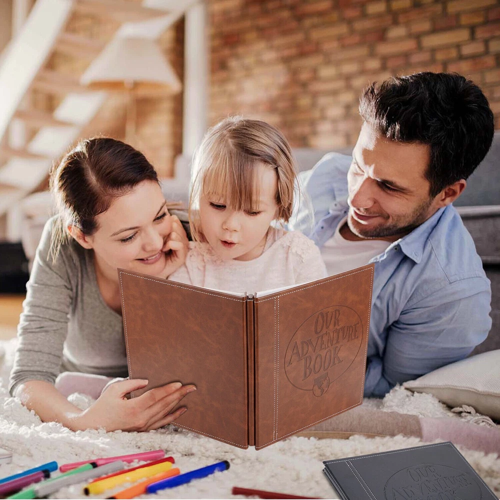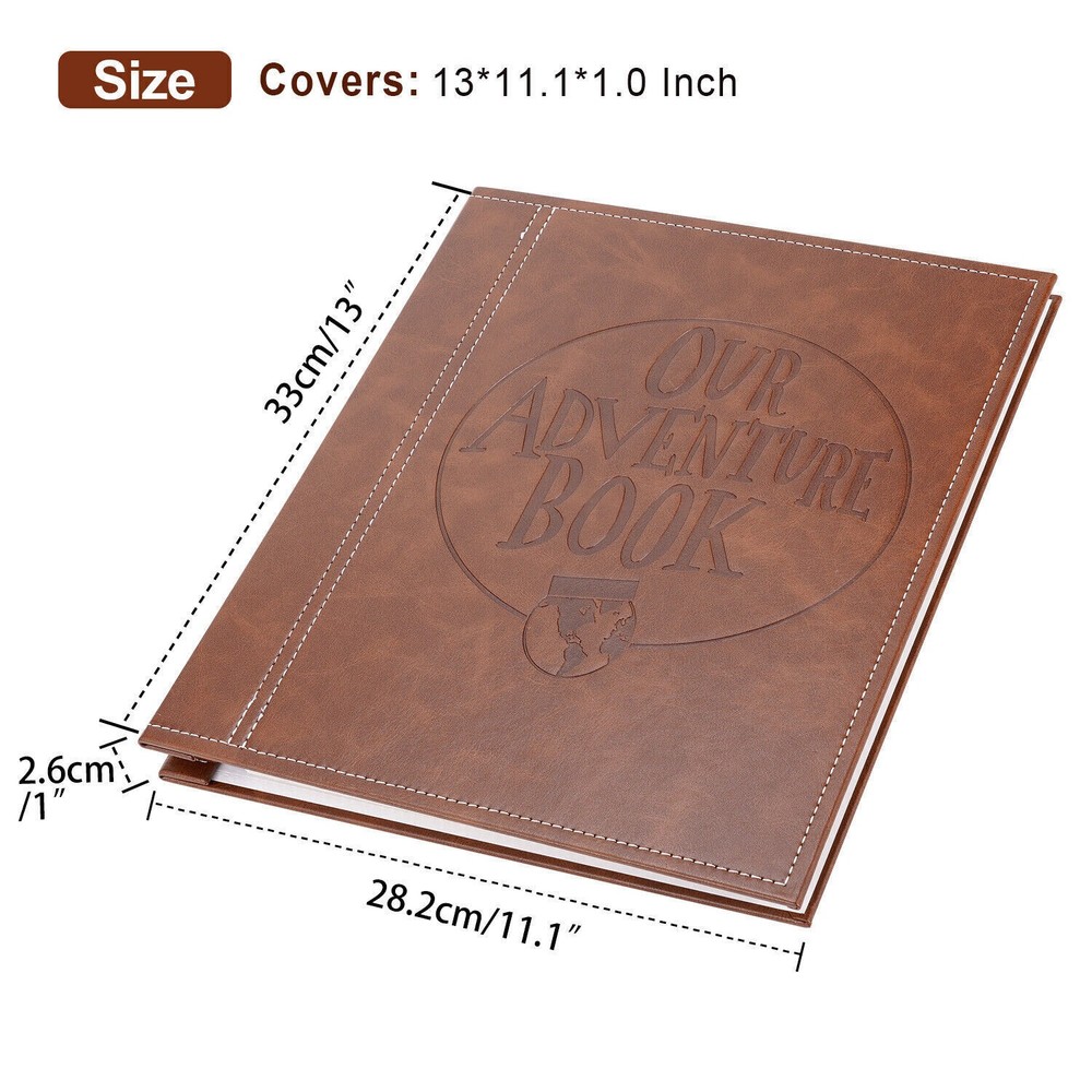 Product description: Our Adventure Book It is an our adventure book scrapbook album, which is made with bigger size than ordinary ones, so you will have more space to place and record your memories. All pages are blank, so you can make it as your unique scrapbook with your sweet photos, travel tickets, and write your notes, it is a meaningful photo album to storage your special memories. Pages: 20 sheets / 40 pages Style: screw binding Material: The cover is leather, the inner page is PP film + white cardboard. If you are thinking of giving someone a gift for birthday, wedding event, or to your significant other, this one can be a great option for you to choose, it can be used for many occasions as wedding shower, baby shower, anniversary album, Valentine's day, Christmas, Thanksgiving Day, etc. Product features: 1. High-grade leather cover + 2.5mm thick gray board window + 300g viscose inner pages 20 sheets (40 pages) 2. Cover size: 330×280mm 3. Packing method: single copy into OPP bag Package including: 1* Photo Album Scrapbook