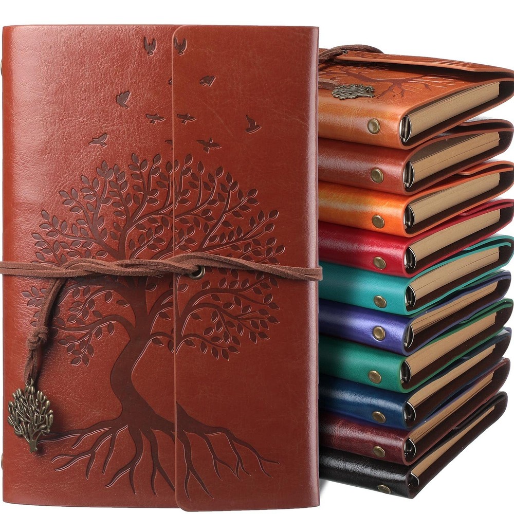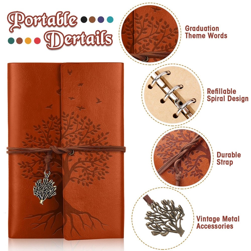 PU leather Journal notebooks Tree Life Bound Journals Diary Vintage Refillable Blank Notebook Retro Leather Notebook Blank Loose Leaf Travelers Journal for Women Men, 7 Inch (Vivid Color,10 Pcs) Product Details Brand: Thenshop Color: Vivid Color Theme: Book Sheet Size: 5-x-8-inch inches Pages: 160 Pages Cover Material: Faux Leather Style: Vintage Ruling Type: Plain Special Feature: Lightweight Number of Items: 10 Manufacturer: Thenshop Brand: Thenshop Item Weight: 3.53 ounces Package Dimensions: 10.63 x 8.78 x 4.53 inches Item model number: STA-Thenshop-763 Color: Vivid Color Cover Material: Faux Leather Number of Items: 10 Ruling: Plain Sheet Size: 5-x-8-inch inches Manufacturer Part Number: STA-Thenshop-763 Date First Available: January 31, 2023 Rich in Quantity: you will receive 10 pieces of PU leather bound notebooks in 10 different colors, each cover is printed with tree life and matched with tree pendant, enough quantity and various colors to meet your needs and replacements, and you can also share some with your friends and family members Enjoy DIY Fun: the inner paper of the faux leather journal is plain and blank, which allow you to design various patterns, words, pictures, ideas, mind maps and notes on it, to DIY your own distinctive style notebooks Refill and Remove: the vintage journals adopt binding ring design, easy and convenient for you to remove unwanted pages and add pages you want, recording your memories and providing a lot of convenience for you Reliable Material: the refillable leather journal notebook is mainly made of PU leather and paper material, reliable and reusable, sturdy and lightweight, smooth and safe, not easy to break or tear, which can serve you for a long time and you can use it with confidence Wide range of applications: the refillable notebook is a practical and elegant tool in your daily life, which can be applied as a notebook, drawing board, sketchbook, travel notebook, diary planner, pictures organizer, photo album and more