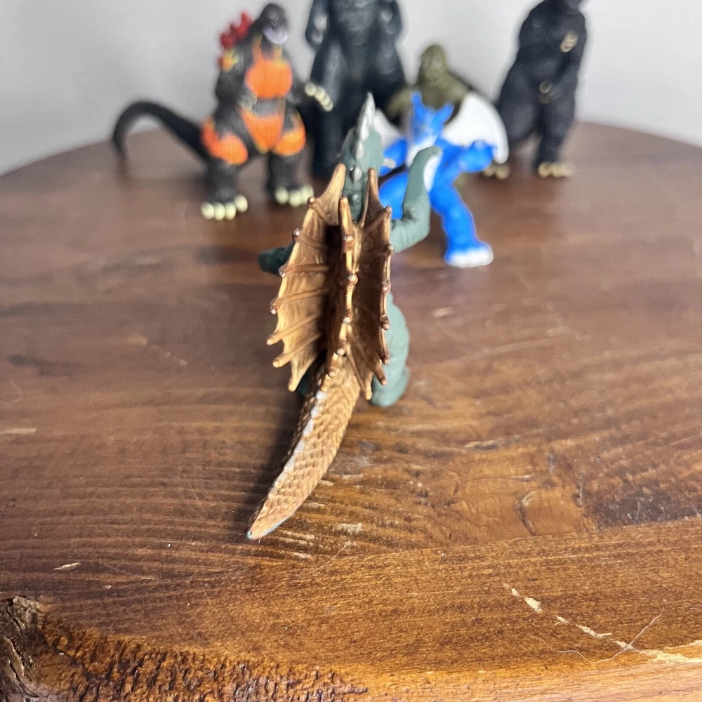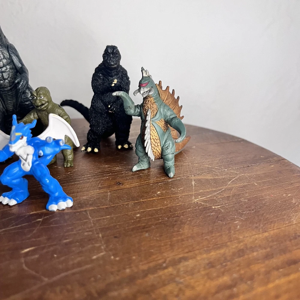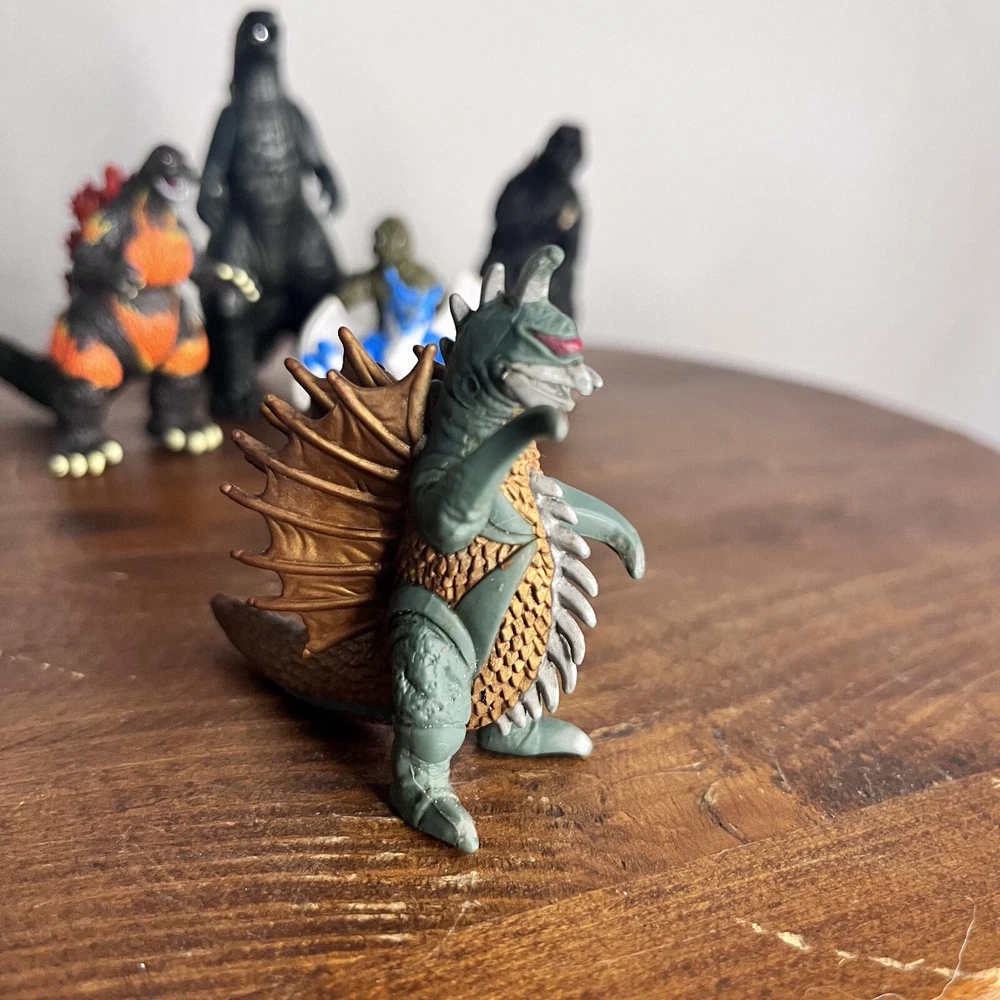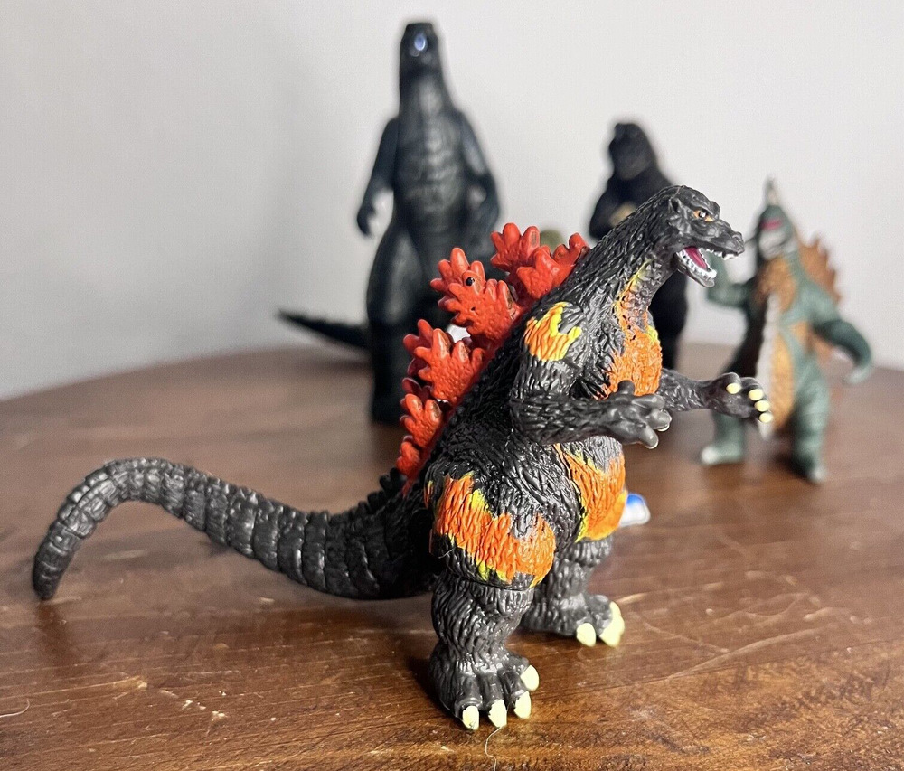 Mini Godzilla action figures - check out pics for description 'cuz this is what I'm knowing: 'Godzilla action figures'. Please note mark on Baby Godzilla's shoulder - the battery powered one (on side) has not been tested. Bic for sizing~ Thanks for looking!