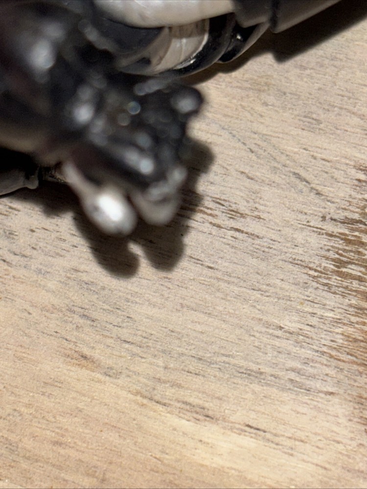Fingers on right hand are missing. Either bitten off or something. Thumb was in place.
