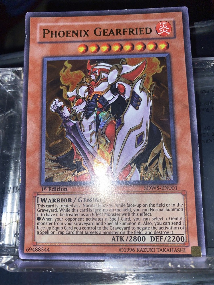 Product Details This card is treated as a Normal Monster while face-up on the field or in the Graveyard. While this card is face-up on the field, you can Normal Summon it to have it be treated as an Effect Monster with this effect: • When your opponent activates a Spell Card: You can select 1 Gemini monster from your Graveyard and Special Summon it. Also, you can send 1 face-up Equip Card you control to the Graveyard to negate the activation of a Spell or Trap Card and destroy it. Number:SDWS-EN001 Rarity:Ultra Rare Attribute Monster Type/Card Type:FIRE Warrior/Gemini Monster Level:8 A / D:2800 / 2200 Artist:Warrior