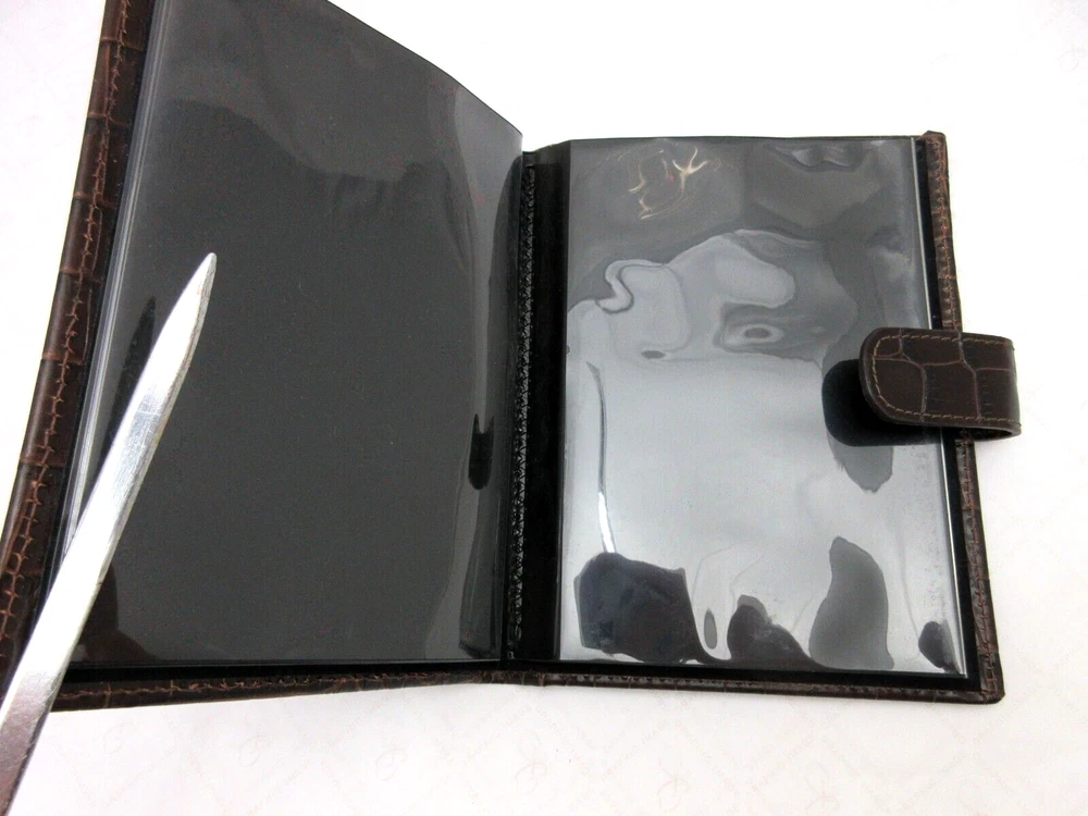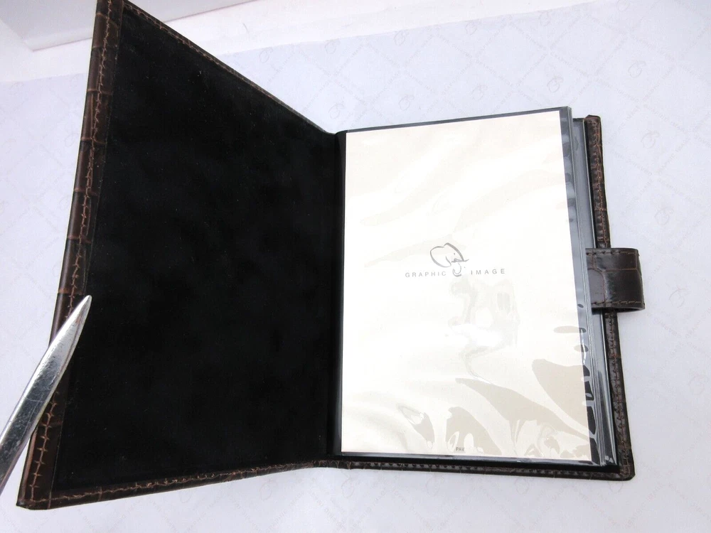 New Small Photo Book has a crocodile embossed fine leather cover with a snap closure Features archival polypropylene pages and a protective snap closure. Size 5" x 6-1/2" 10 crystal-clear leaves hold 20 4" x 6" photos Detailed with topstitching Secure snap closure Made by Graphic Image in New York, USA If you’re buying multiple items from us, we are happy to ship everything to you in the same package. Simply add the items you want to buy to your cart and ebay will automatically combine shipping costs.
