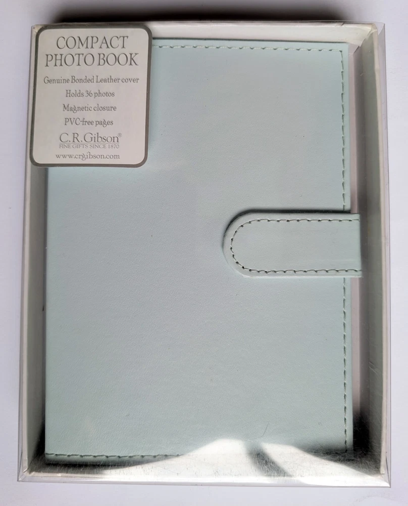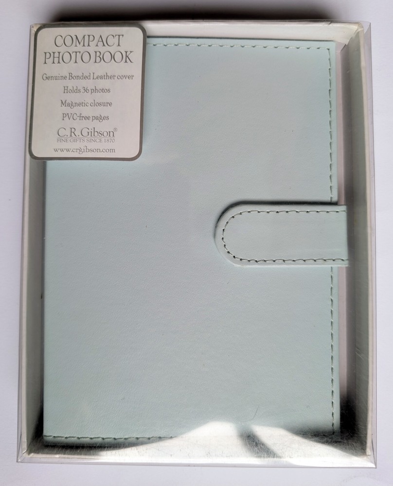 Compact Photo Album / Brag Book by C.R. Gibson New in box Light blue bonded leather cover Magnetic closure Holds 36 4x6 photos PVC-free pages...