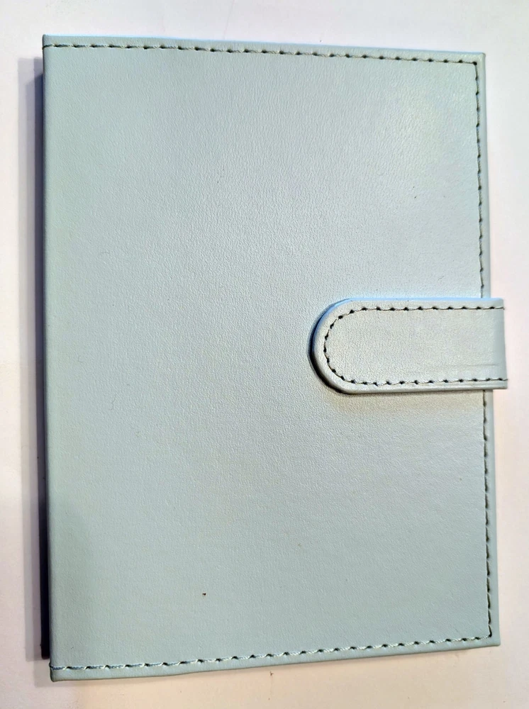 Compact Photo Album / Brag Book by C.R. Gibson New in box Light blue bonded leather cover Magnetic closure Holds 36 4x6 photos PVC-free pages