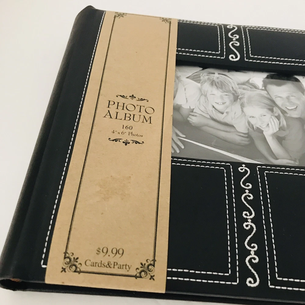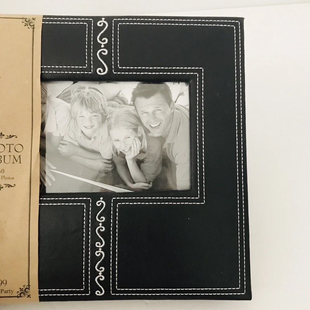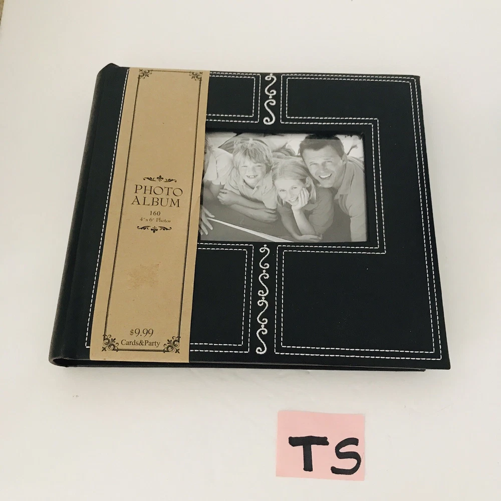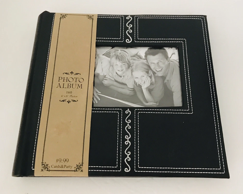 Very pretty Photo Album by Hobby Lobby . Each page holds 4”x 6" photos with each side slip in pages holding 4 photos per page. Holds a total of 160 photos. Great Photo Album is Faux Black with a pretty Embroidered design. Album measures 9.5x 8.5” Condition is "New". Carefully Shipped with USPS Media Mail with a 6-9 day delivery.