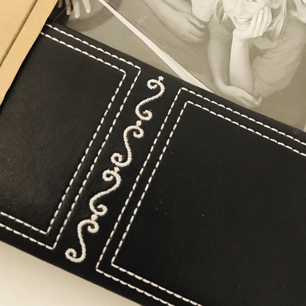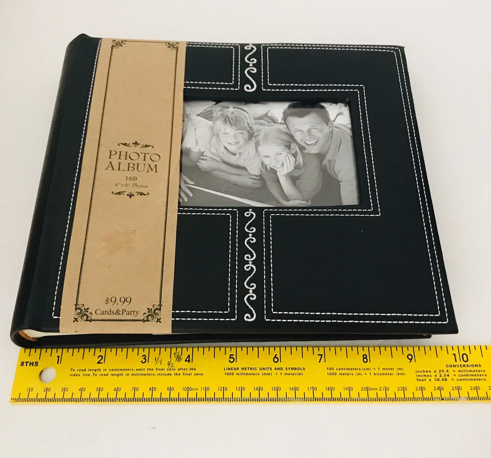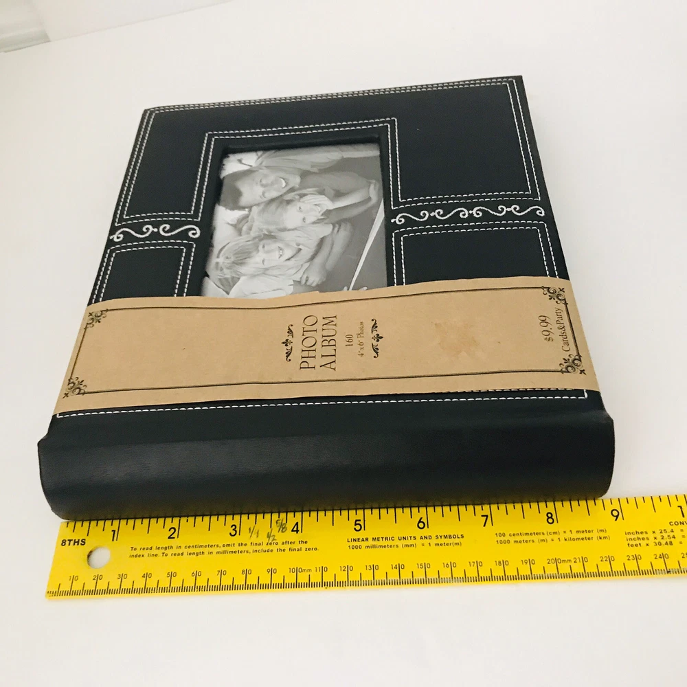 Very pretty Photo Album by Hobby Lobby . Each page holds 4”x 6" photos with each side slip in pages holding 4 photos per page. Holds a total of 160 photos. Great Photo Album is Faux Black with a pretty Embroidered design. Album measures 9.5x 8.5” Condition is "New". Carefully Shipped with USPS Media Mail with a 6-9 day delivery.
