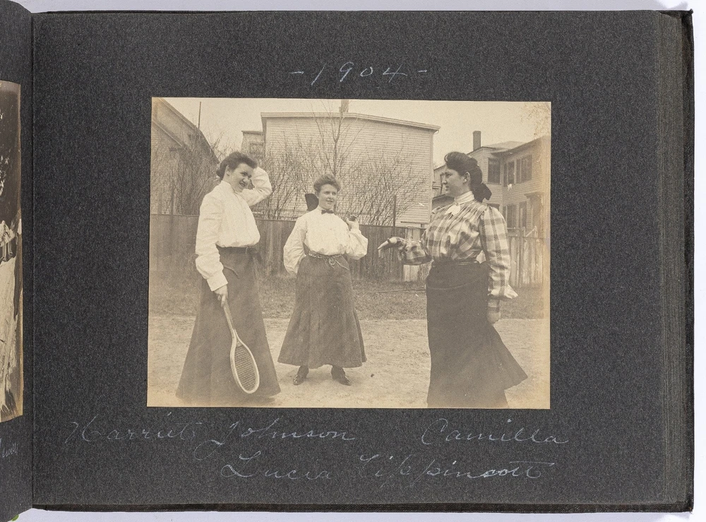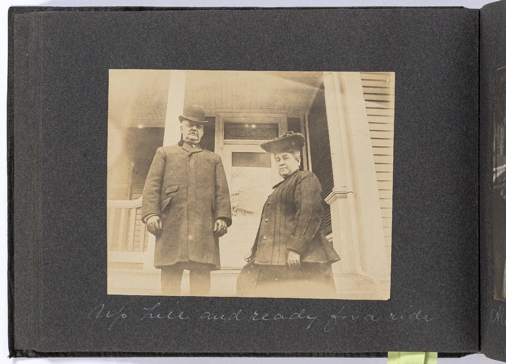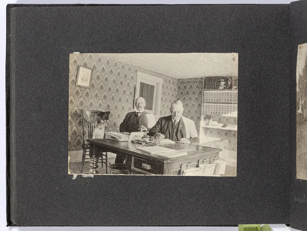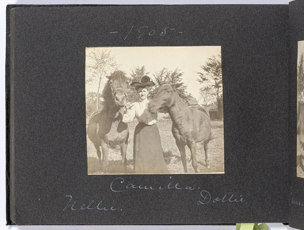 [Photo Album]: Family Photo Album from Pittsburgh, Pennsylvania in the Early 1900s Title: [Photo Album]: Family Photo Album from Pittsburgh, Pennsylvania in the Early 1900s Publication: Pittsburgh, Pennsylvania: 1903-1905 Description: Softcover. Oblong octavo measuring 7.5" x 6.75". Black leather flexible boards. Contains 100 gelatin silver black and white or sepia toned photographs measuring between 3.5" x 3" and 4.5" x 4" with captions. Fine with fine photographs. A family photo album from 1903 through to 1905 in Pittsburgh, Pennsylvania. The young woman captions the photos with the first names of her dear friends and family members as well as her pet dog, Jerry and pet cat, Spot. The family also owned two horses Nellie and Dottie, who can be seen also drawing a carriage along in some of the photographs. The woman's mother and father are pictured together, captioned "Up Hill and Ready for a Ride". The album shows the transition of fashion from long and tight dresses with embellishments to looser decorative shirts and skirts that did not slim the figure as drastically. Some of the girl's school uniforms can be seen with a shorter hemline and humorously, a young boy is seen wearing one of the skirts over his school trousers. While many of the photographs are posed there are some candids, including a charming shot of the women laughing together while enjoying the outdoors, getting ready to play tennis together, or boating on a lake. An interesting photograph shows two women together with a broom, both their mattress on their roof awnings for cleaning. There is a photograph titles "Maid, Mayor, Cook" in which the current Mayor, William B. Hays, of Pittsburgh can be seen in between to women. He is a pictured again with the woman's father in his office with a small dog sitting at their drafting table with the two men. Seller ID: 444215 Between the Covers Between the Covers has been selling books for more than 30 years. Today we offer a wide ranging inventory, from Modern First Editions to General Used Books to Rare Archival Collections. We are active members of the Antiquarian Booksellers' Association of America (ABAA) and the International League of Antiquarian Booksellers (ILAB) . Terms All orders ship within two business days. Standard mail is USPS Media Mail. Expedited and international shipping are also available. We offer combined shipping on multiple orders. All books are guaranteed to be as described or they may be returned within 30 days of receipt for a full refund. This listing was created by Bibliopolis.