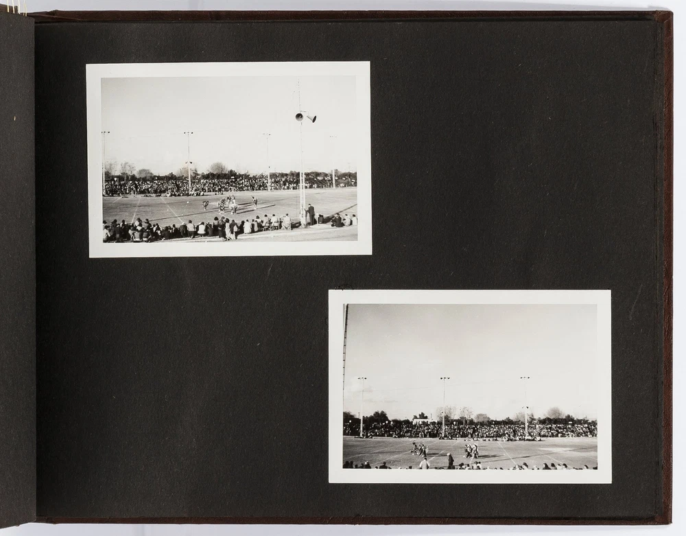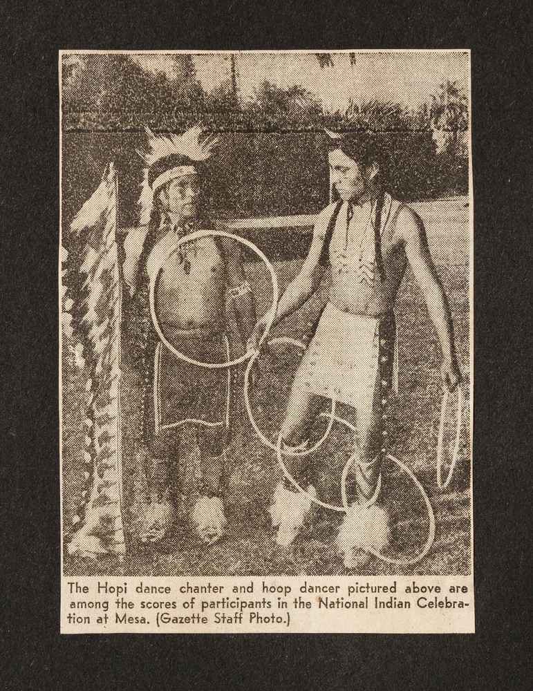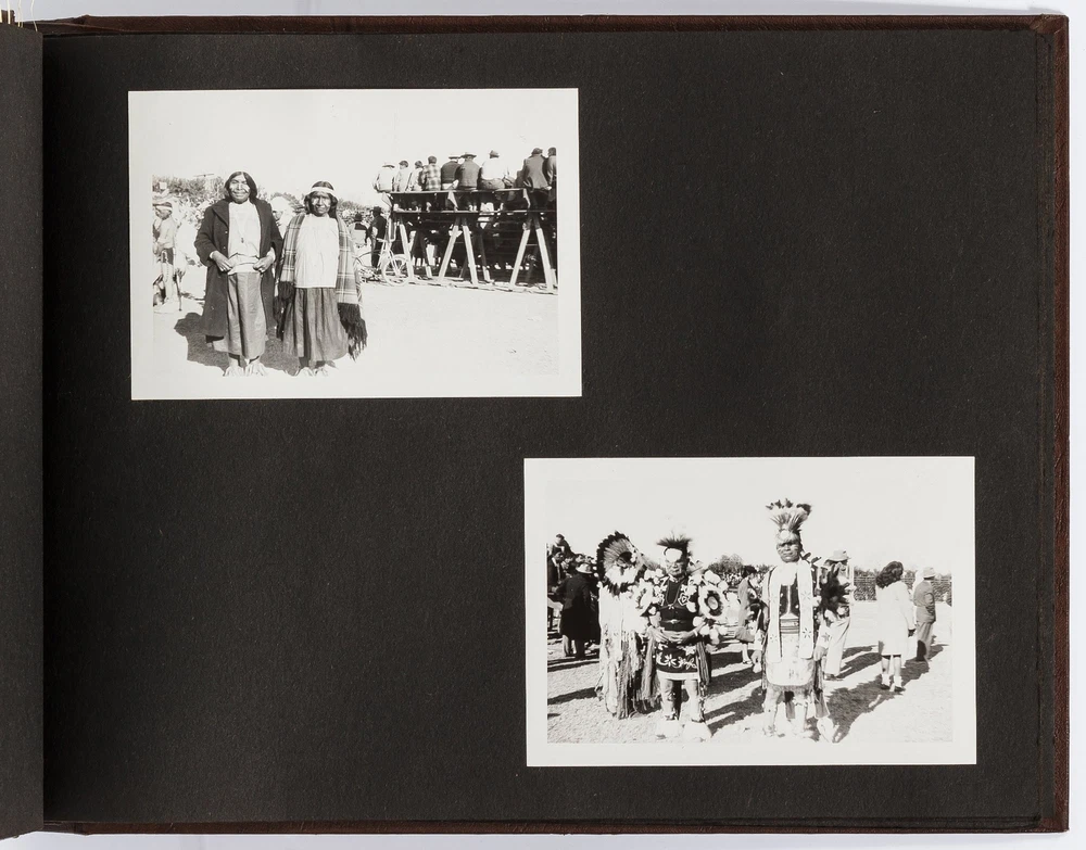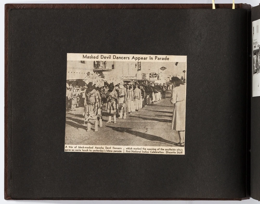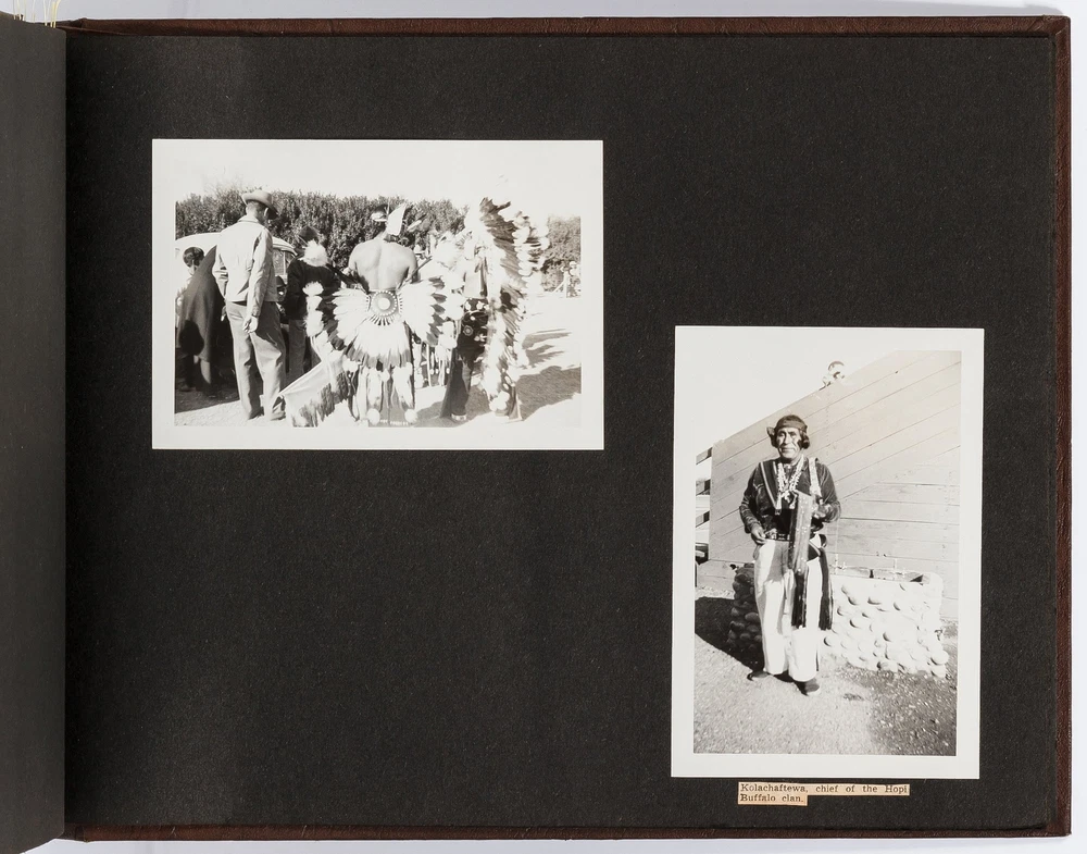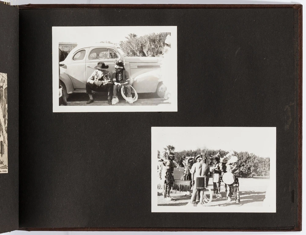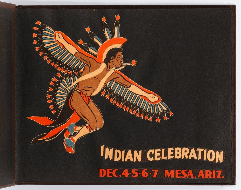 [Photo Album]: "Indian Celebration" Title: [Photo Album]: "Indian Celebration" Publication: Mesa, Arizona: 1947 Description: Softcover. Oblong quarto measuring 12" x 9". String-tied brown leather over stiff paper boards with "photographs" stamped in gilt on the front board. Contains 35 black and white gelatin silver photographs measuring around 3.5" x 5" with some captions. Near fine album with fine photographs. A photo album detailing an "Indian Celebration" in Mesa Arizona in 1947. The album beings with a cut out from the program of a Native American in traditional dress with "Indian Celebration Dec. 4-5-6-7 Mesa Arizona" underneath. Following this is a clipping which reads, "Husky Mark Vest of the Maricopa tribe, standing well over six feet, will be one of the hundreds of performers to be seen each night through Sunday at the first National Indian Celebration in Mesa." The rest of the album features photographs from the events including a parade through town, dancing, music, and people in traditional Native American dress. Other pages include clippings from the program from the events and local newspapers one of which shows a "Hopi dance chanter and a Hopi dancer;" another reads "Indian Squaws from Ute, Navajo, and Laguna Tribes." One photograph portrait of a man reads "Kolachaftewa, chief of the Hopi Buffalo clan" and another shows Tony Whitecloud the "founder of the modern Hoop Dance." A modest but interesting collection of photographs following a Native American cultural event in the 1940s. Seller ID: 417351 Subject: Americana, Ephemera, Photography, Travel Books Between the Covers Between the Covers has been selling books for more than 30 years. Today we offer a wide ranging inventory, from Modern First Editions to General Used Books to Rare Archival Collections. We are active members of the Antiquarian Booksellers' Association of America (ABAA) and the International League of Antiquarian Booksellers (ILAB) . Terms All orders ship within two business days. Standard mail is USPS Media Mail. Expedited and international shipping are also available. We offer combined shipping on multiple orders. All books are guaranteed to be as described or they may be returned within 30 days of receipt for a full refund. This listing was created by Bibliopolis.