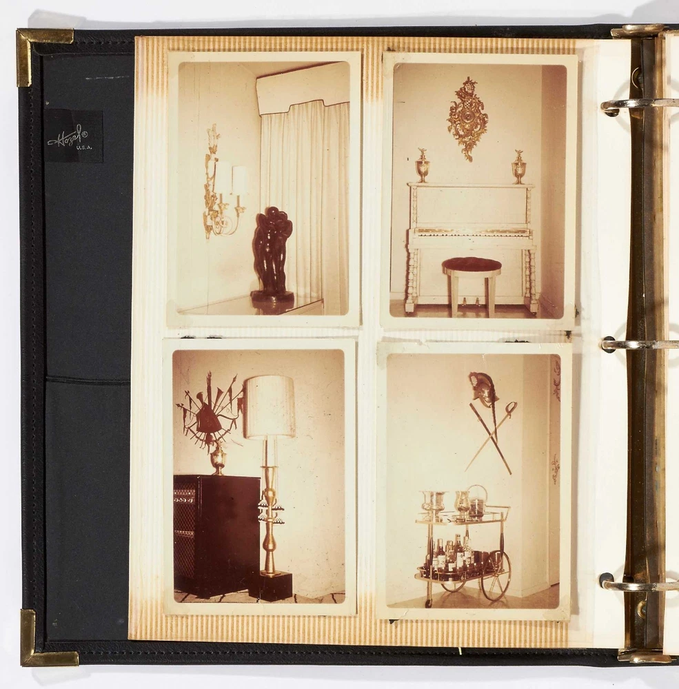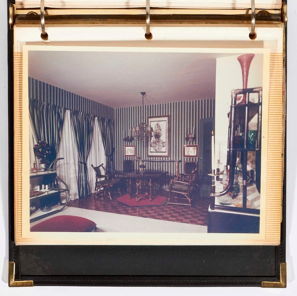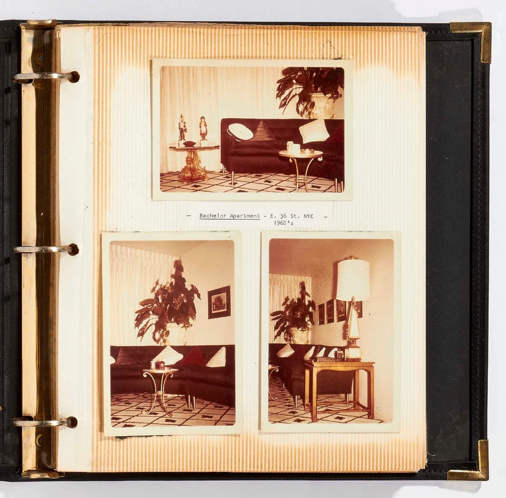 [Photo Album]: Interior Designer 1960 Title: [Photo Album]: Interior Designer 1960 Publication: New York, Toronto, Connecticut: 1960s Description: Softcover. Quarto measuring 10.5" x 11.5". Flexible black leather three-ring binder with gold metal corners. Contains 37 color photographs measuring between 3.5" x 5" and 8" x 10" with some captions. Near fine album with some rubbing with fine photographs. A photo album presumably kept by an interior designer in the 1960s showing off a variety of apartment ideas with an emphasis on the "bachelor apartment." The first section of captioned "Bachelor Apartment E. 36 St. NYC 1960s" and shows 13 photographs of the apartment detailing the furniture, including a helmet and swords displayed over a fully stocked bar cart, and a small piano. Following this is a section of larger photos showing a "Bachelor Apartment Toronto, Canada 1960s." This apartment is styled in green and red velvet with one photo showing a man with a glass in his hand posed on the tufted sofa. The bedroom of this swanky pad is also featured here with w curious double bed combined to create a full sized bed and a wrought iron chandelier hovering above it. Above a page of bedroom furniture a caption reads, "Early Family painted bedroom furniture stained - antique accessories." Another photos shows a busy wallpaper design of repeating roasters used in a galley kitchen, another wallpaper shot shows a stripped pattern with framed illustrations of monkeys hanging in the center. The final design featured here is a "Connecticut Home" from Revonah Wood's Stamford, Connecticut. These photos show a well-to-do couple and friends in their nicely furnished living room with included a purple velvet sofa, bar cart, and numerous wall hangings. The final page is a drawing of a layout for a living room. An interesting look at a designer's work and 1960s aesthetic. Seller ID: 414343 Subject: Ephemera, Photography Between the Covers Between the Covers has been selling books for more than 30 years. Today we offer a wide ranging inventory, from Modern First Editions to General Used Books to Rare Archival Collections. We are active members of the Antiquarian Booksellers' Association of America (ABAA) and the International League of Antiquarian Booksellers (ILAB) . Terms All orders ship within two business days. Standard mail is USPS Media Mail. Expedited and international shipping are also available. We offer combined shipping on multiple orders. All books are guaranteed to be as described or they may be returned within 30 days of receipt for a full refund. This listing was created by Bibliopolis.