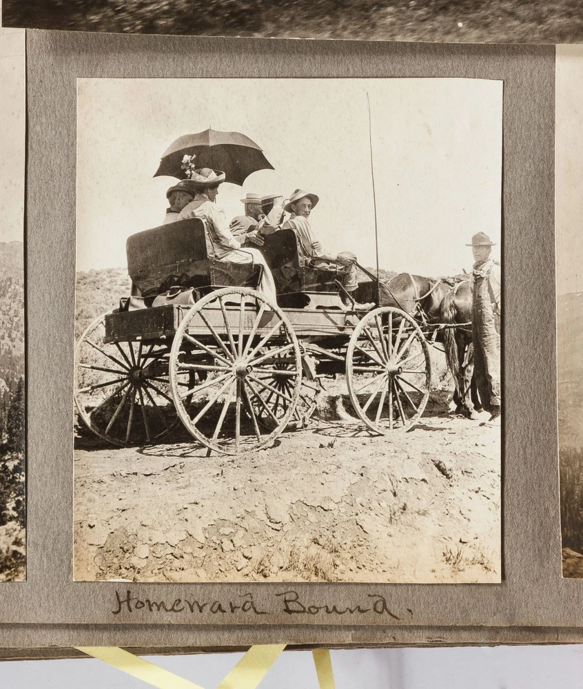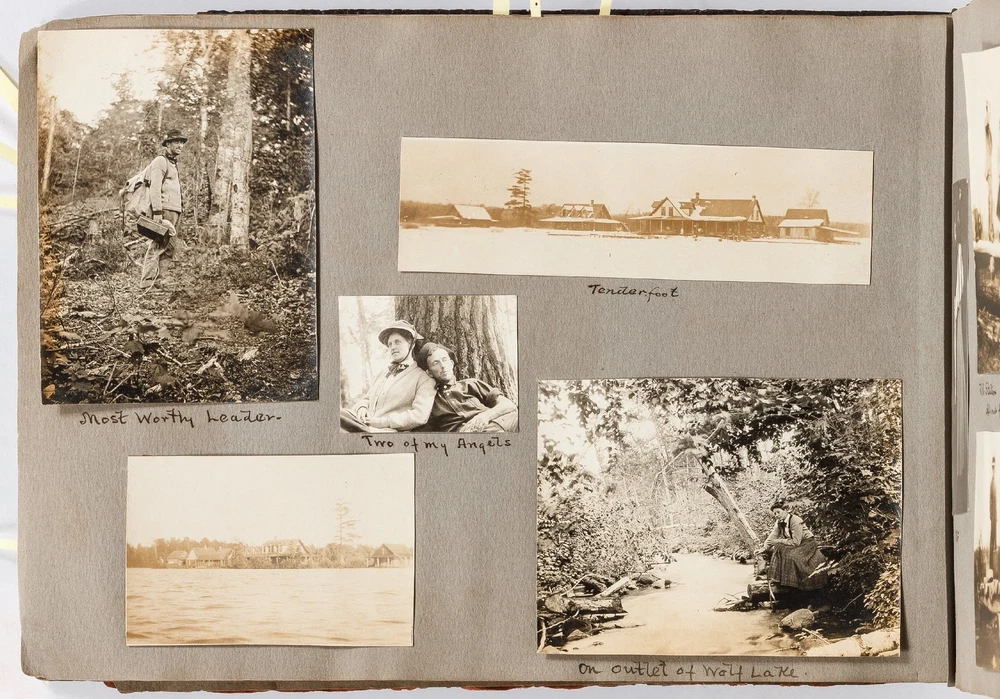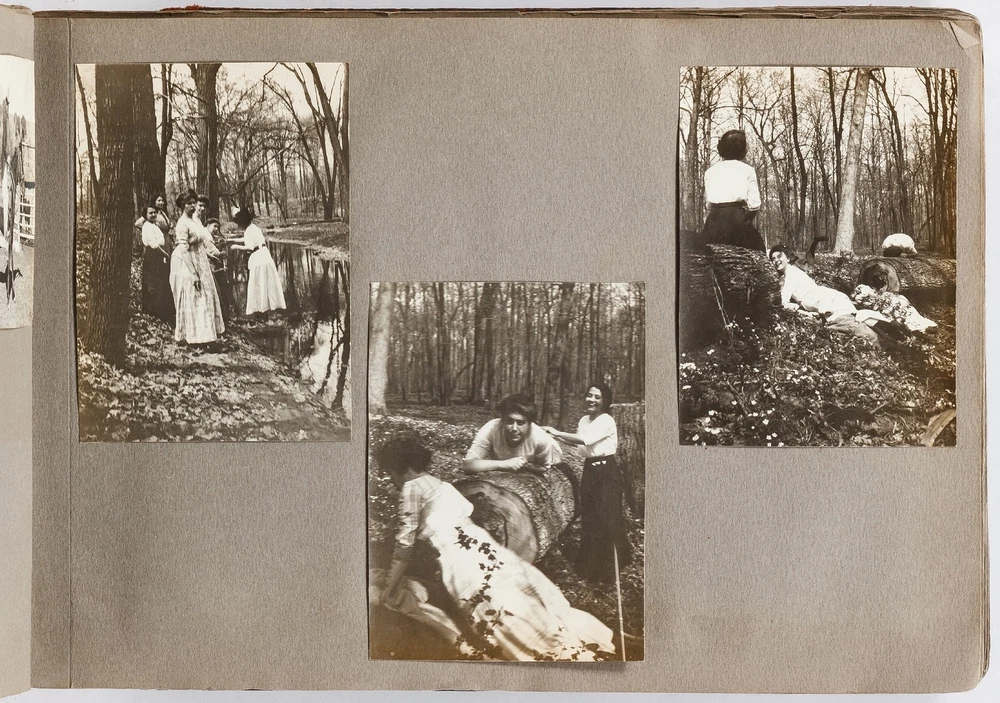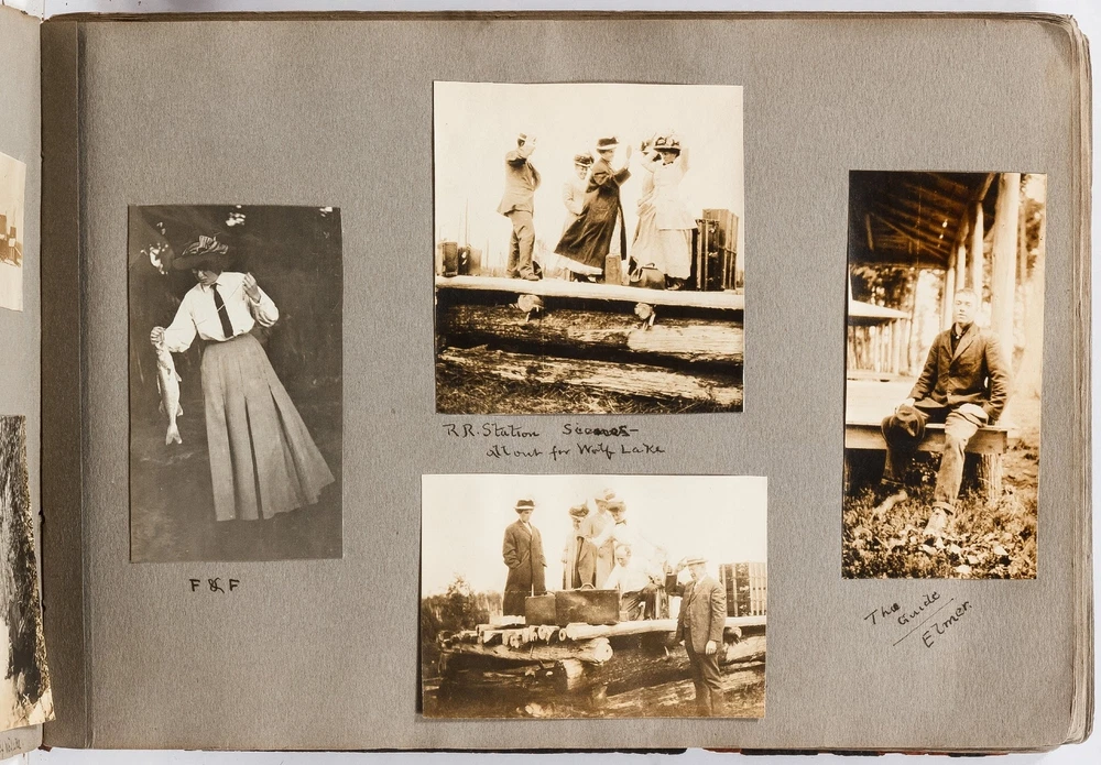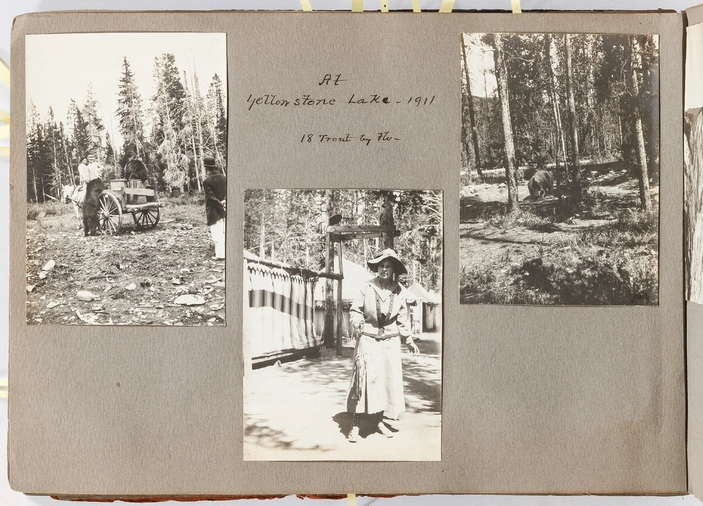 [Photo Album]: Large album of interesting mostly Outdoor images of the West and Midwest Title: [Photo Album]: Large album of interesting mostly Outdoor images of the West and Midwest Publication: Various locations: mostly 1908-1918 Description: Softcover. Larger oblong octavo. Approximately 10.5" x 7.25". Leather over flexible card wrappers. Chipping and with some loss, spine partially perished, front wrap detached but present, overall good, with mostly very good or better images. Approximately 421 gelatin silver images. Various sizes, mostly variants of 3" x 4" with some smaller and larger. Sporadically captioned, mostly identifying locations and dates. An album that seems to be from the feminine perspective that includes a generous selection of outdoor images at various vacation or wilderness areas that are mostly Western: Yellowstone, Wyoming, Colorado, California, and others; and Midwestern locations including Minnesota and Wisconsin, and a few images near the end of a Maine vacation spot. Activities include much hunting and fishing, camping, horse roping, logging, swimming and bathing, hiking, and motoring, with many puckish images of women and some men posing. About the last quarter of the album is of nurses in California, probably during WWI, caring for wounded soldiers. Some of the captioned images are identified, including D.B. Lyman, Jr. a Chicago. Among the images are several others laid in loose, including a few from much later dates (1940s-1964), which we assume are from a descendant. In any case a more interesting than usual album of outdoor activities. Seller ID: 413406 Subject: Photography Between the Covers Between the Covers has been selling books for more than 30 years. Today we offer a wide ranging inventory, from Modern First Editions to General Used Books to Rare Archival Collections. We are active members of the Antiquarian Booksellers' Association of America (ABAA) and the International League of Antiquarian Booksellers (ILAB) . Terms All orders ship within two business days. Standard mail is USPS Media Mail. Expedited and international shipping are also available. We offer combined shipping on multiple orders. All books are guaranteed to be as described or they may be returned within 30 days of receipt for a full refund. This listing was created by Bibliopolis.