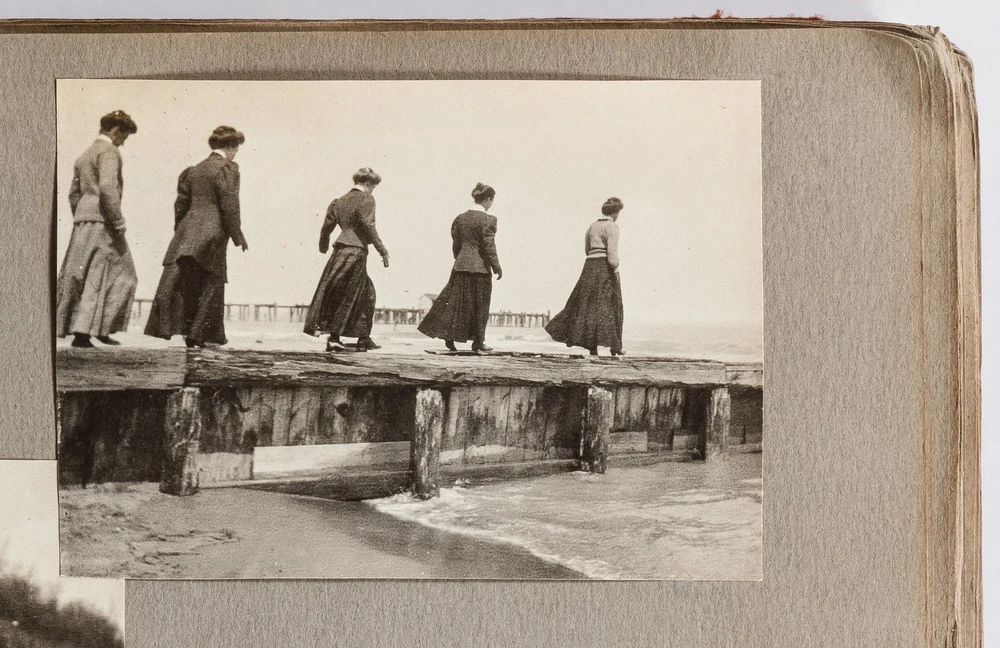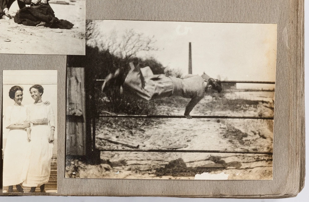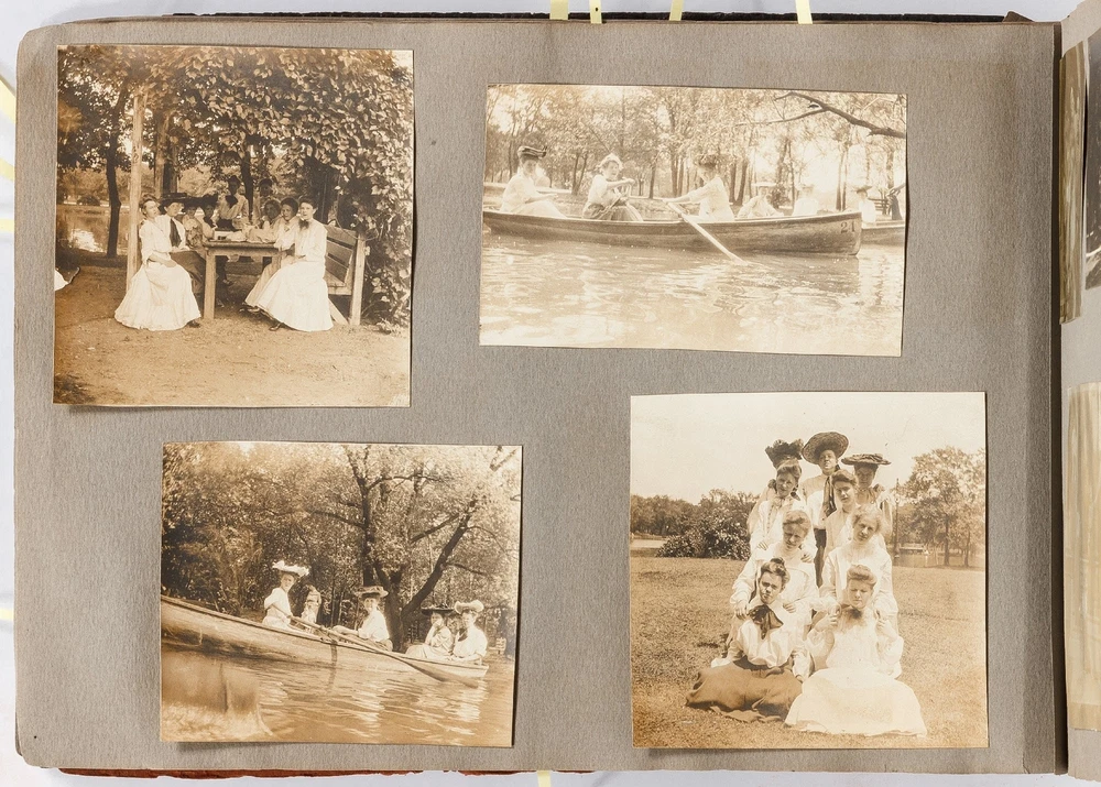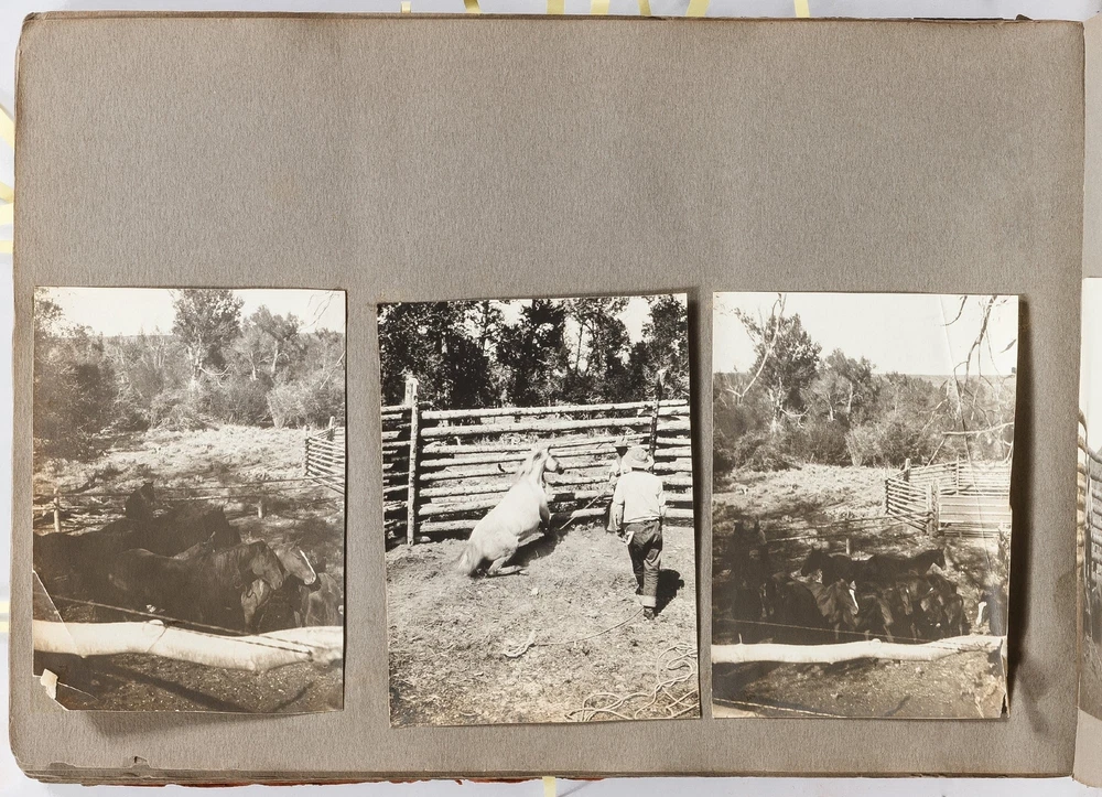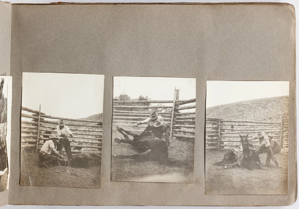 [Photo Album]: Large album of interesting mostly Outdoor images of the West and Midwest Title: [Photo Album]: Large album of interesting mostly Outdoor images of the West and Midwest Publication: Various locations: mostly 1908-1918 Description: Softcover. Larger oblong octavo. Approximately 10.5" x 7.25". Leather over flexible card wrappers. Chipping and with some loss, spine partially perished, front wrap detached but present, overall good, with mostly very good or better images. Approximately 421 gelatin silver images. Various sizes, mostly variants of 3" x 4" with some smaller and larger. Sporadically captioned, mostly identifying locations and dates. An album that seems to be from the feminine perspective that includes a generous selection of outdoor images at various vacation or wilderness areas that are mostly Western: Yellowstone, Wyoming, Colorado, California, and others; and Midwestern locations including Minnesota and Wisconsin, and a few images near the end of a Maine vacation spot. Activities include much hunting and fishing, camping, horse roping, logging, swimming and bathing, hiking, and motoring, with many puckish images of women and some men posing. About the last quarter of the album is of nurses in California, probably during WWI, caring for wounded soldiers. Some of the captioned images are identified, including D.B. Lyman, Jr. a Chicago. Among the images are several others laid in loose, including a few from much later dates (1940s-1964), which we assume are from a descendant. In any case a more interesting than usual album of outdoor activities. Seller ID: 413406 Subject: Photography Between the Covers Between the Covers has been selling books for more than 30 years. Today we offer a wide ranging inventory, from Modern First Editions to General Used Books to Rare Archival Collections. We are active members of the Antiquarian Booksellers' Association of America (ABAA) and the International League of Antiquarian Booksellers (ILAB) . Terms All orders ship within two business days. Standard mail is USPS Media Mail. Expedited and international shipping are also available. We offer combined shipping on multiple orders. All books are guaranteed to be as described or they may be returned within 30 days of receipt for a full refund. This listing was created by Bibliopolis.