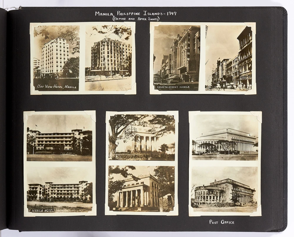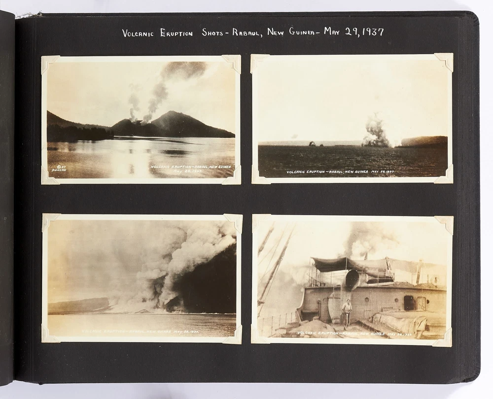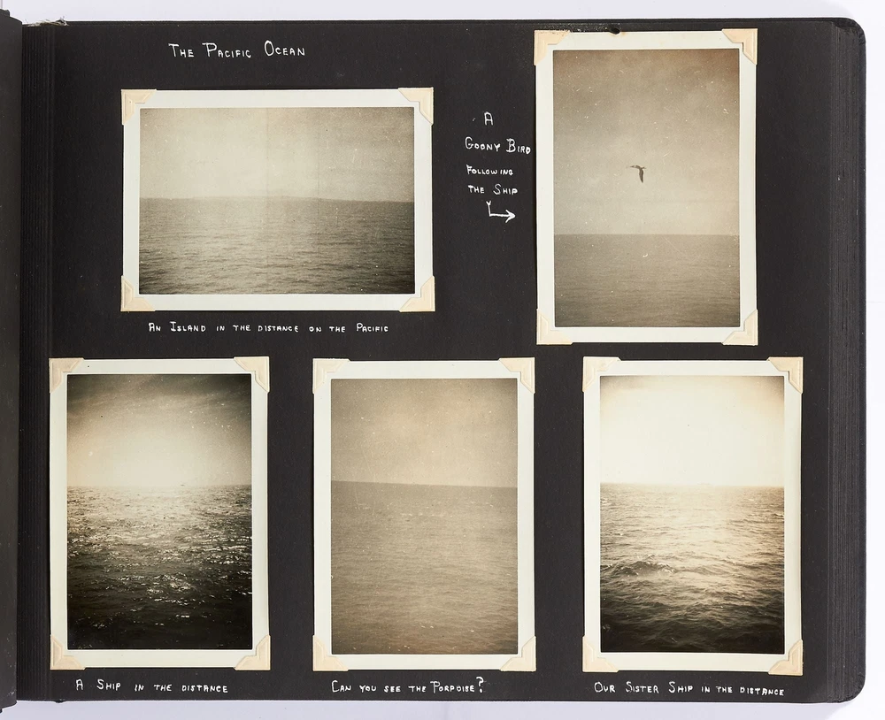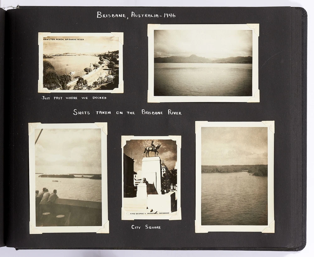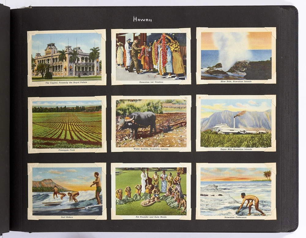 [Photo Album]: On Board the U.S.S. Mariposa Title: [Photo Album]: On Board the U.S.S. Mariposa Publication: 1944-1947 Description: Softcover. Oblong quarto. Measuring 13" x 10". String-tied black leather. Contains 190 black and white or sepia toned gelatin silver photographs measuring between 1.75" x 2.5" and 8" x 11", with captions and 20 pictorial postcards. Very good photo album with some mustiness, rubbing, and slight edgewear with near fine photographs. A photo album kept by a sailor while serving on board the S.S. *Mariposa* and S.S. *Aberdeen Victory* during and after World War II between 1944 and 1947. The album begins with photos of the *Mariposa* docked in Newport News, Virginia in 1945 followed by a large photo of the S.S. *Aberdeen Victory* in Marseille in 1947 with a caption that reads, "went around the world in this ship." One page includes a collection of portrait photos of young women he met on his travels with their location captioned under the photo including the Philippines, Brazil, Panama, and England. The *Mariposa* is photographed thoroughly including the rigging, kitchen, sleeping quarters, and upper decks. One section is captioned "Life Aboard S.S. Mariposa (when not working)" and shows the men "getting the sun" and playing a game they created called "Fork-U." There are also photos from the Atlantic Ocean and the Mediterranean featuring the North Atlantic in winter and the Rock of Gibraltar. The Pacific Ocean is also pictured with photos of a "goony bird following the ship" and an "island in the distance on the Pacific." The *Aberdeen* is also photographed in a section titled "Aberdeen Victory views 1947" which shows the church altar aboard the ship and "unloading by crane in Bombay." The men of the *Aberdeen* are also seen washing clothes and peeling potatoes. The crew enjoyed time off the ship as well, and photos of leave in the Panama Canal Zone are featured. They went to bars including the Florida club and flirted with local girls. When traveling past San Francisco the compiler photographed Alcatraz and the Army docks where the Navy ships were kept. The sailor also collected a number of pictorial postcards from his stop in Hawaii which feature Hawaiian tropical foliage, scenes of life on the island, and various landmarks. While in Hawaii he photographed Wakiki beach and downtown Honolulu with images of street scenes and buildings. Much of his time was spent island hopping in the Pacific to places such as Pago Pago in American Samoa, the Philippines, and Fiji where they spent a majority of their time in Suva. These photos show native houses, beaches, and the local people of the islands. One well-composed photo shows sailors walking up the docks with the *Mariposa* in the background; another shows their sister ship in the docks at Suva. While in Suva the compiler also photographed the local policemen in uniform, the botanical gardens, and the hotel. One photo shows an aerial view of people on a beach and is captioned "war brides and visitors on dock." Later in the album there are professional images of a volcanic eruption in New Guinea which took place in 1937. Another section of professional photos shows before and after shots of Manila depicting the effects of World War II. Photos from Brisbane, Australia show docks with the *Mariposa's* imposing hull in view as well as a seaplane flying over head. The city of Brisbane is also seen throughout with photos of shops and people of the area. They also stopped at Penang Island in the Malayan Straits which features photos of children, temples, and native workers. The final pages are from India and Ceylon with photos of dances, buildings, and a guide with a camel. An extensive collection of photographs detailing a sailor's time with the Navy at the end of World War II. Seller ID: 408134 Subject: Ephemera, Photography Between the Covers Between the Covers has been selling books for more than 30 years. Today we offer a wide ranging inventory, from Modern First Editions to General Used Books to Rare Archival Collections. We are active members of the Antiquarian Booksellers' Association of America (ABAA) and the International League of Antiquarian Booksellers (ILAB) . Terms All orders ship within two business days. Standard mail is USPS Media Mail. Expedited and international shipping are also available. We offer combined shipping on multiple orders. All books are guaranteed to be as described or they may be returned within 30 days of receipt for a full refund. This listing was created by Bibliopolis.