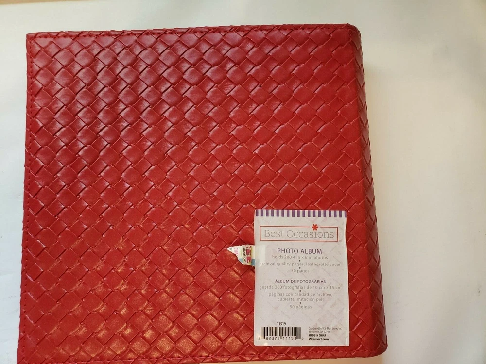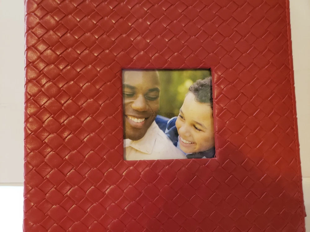 Photo Album, Red Leatherette Weave, 9"x9", 4 Photos/Notes per Page/Front. Approx. holds 200 4" x 6" Photos. Can put in different sizes though. See Photos. (There is also a black one listed just like this red one - if you would like both please email and ask and will work out a price and shipping for both). Very small flaking in two places but not noticeable. Beautiful Red Color. We are a U S A seller located in New Orleans, Louisiana. PLEASE NOTE: S ee pictures for accurate c ondition. The item listed is the EXACT item you will be receiving . I f you have any additional concerns or questions about any image or need more info please do not hesitate to email us.