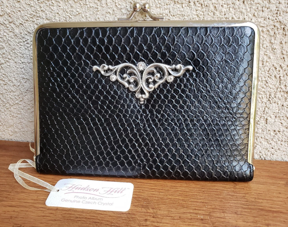 Photo Album Shabby Chic HUDSON HILL in a Black Leather Case with Genuine Czech Crystal Offered for sale Lovely Estate Sale Find - Shabby Chic HUDSON HILL Photo album in leather case with Genuine Czech Crystal Holds about 16 photos. Photo size: 4 x 6 inches. Case Size: 7 x 5 inch bag. ON one of them label: HUDSON HILL Photo album with Genuine Czech Crystal Not sure, but skin feeling Wedding Album, Personalized Photo Book, Wedding Gift, Scrapbook - Great vintage item. It doesn't look used. This will also make a great gift. In excellent vintage condition. Please view all images as they form part of the product description. The album is in good condition with no chips, cracks or repairs. Excellent color and design See pictures for over all condition. Please contact for combined and INTL shipping quotes Shipped with USPS Priority Mail. HAPPY BIDDING!!! Item **L/ F11-23 OUR TERMS AND CONDITIONS: * Payment : We only accept PayPal payments, shipped to a confirmed address. Payment is due within 3 days of purchase. *Shipping : We ship to PayPal's confirmed address only! Shipping handling charges are for lower 48 states. Buyers from other locations including APO please contact us for shipping charges before Feedback: I did good packing for careful shipment and hope it arrived safely. Let me know, please, about delivery or, please, leave Feedback upon receipt of your item Thank You for visiting our store!