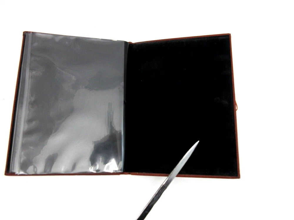 New Small Photo Book has a fine leather cover with a wrap tie closure Archival polypropylene pages Size 5" x 6-1/2" 10 crystal-clear leaves hold 20 4" x 6" photos Detailed with topstitching Made by Graphic Image in New York, USA If you’re buying multiple items from us, we are happy to ship everything to you in the same package. Simply add the items you want to buy to your cart and select "REQUEST AN INVOICE".