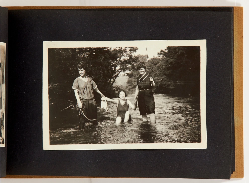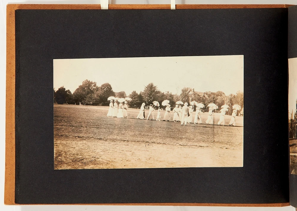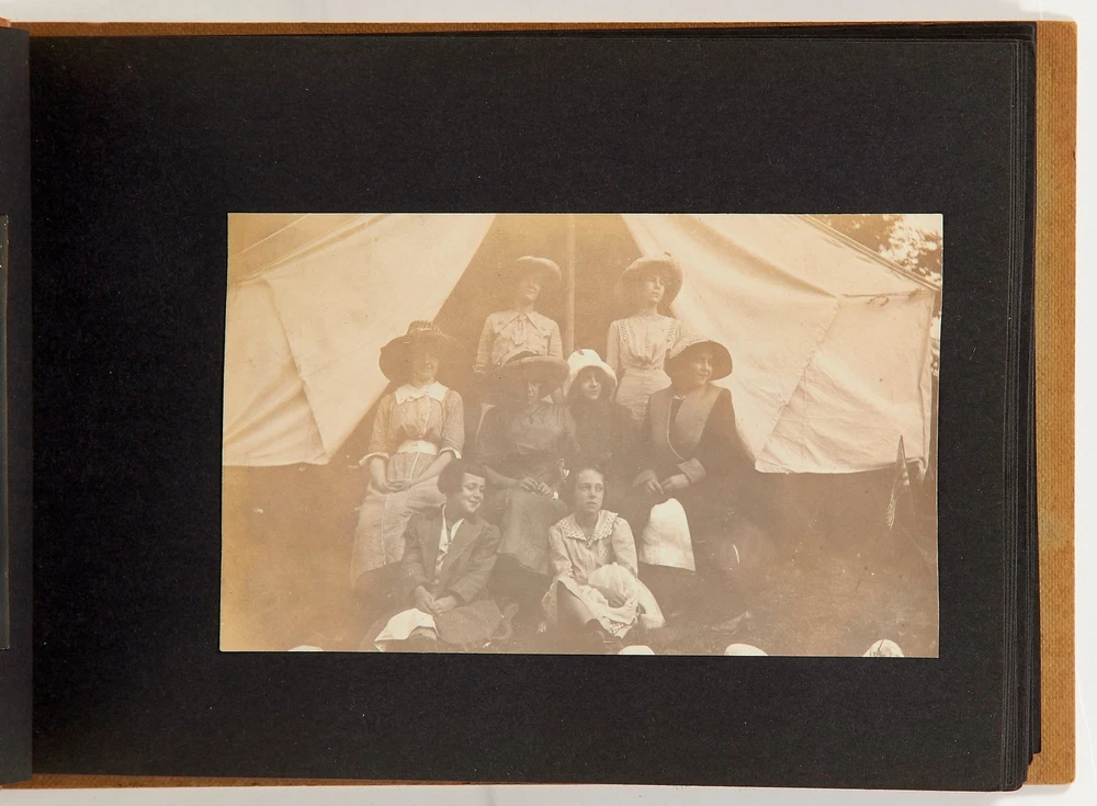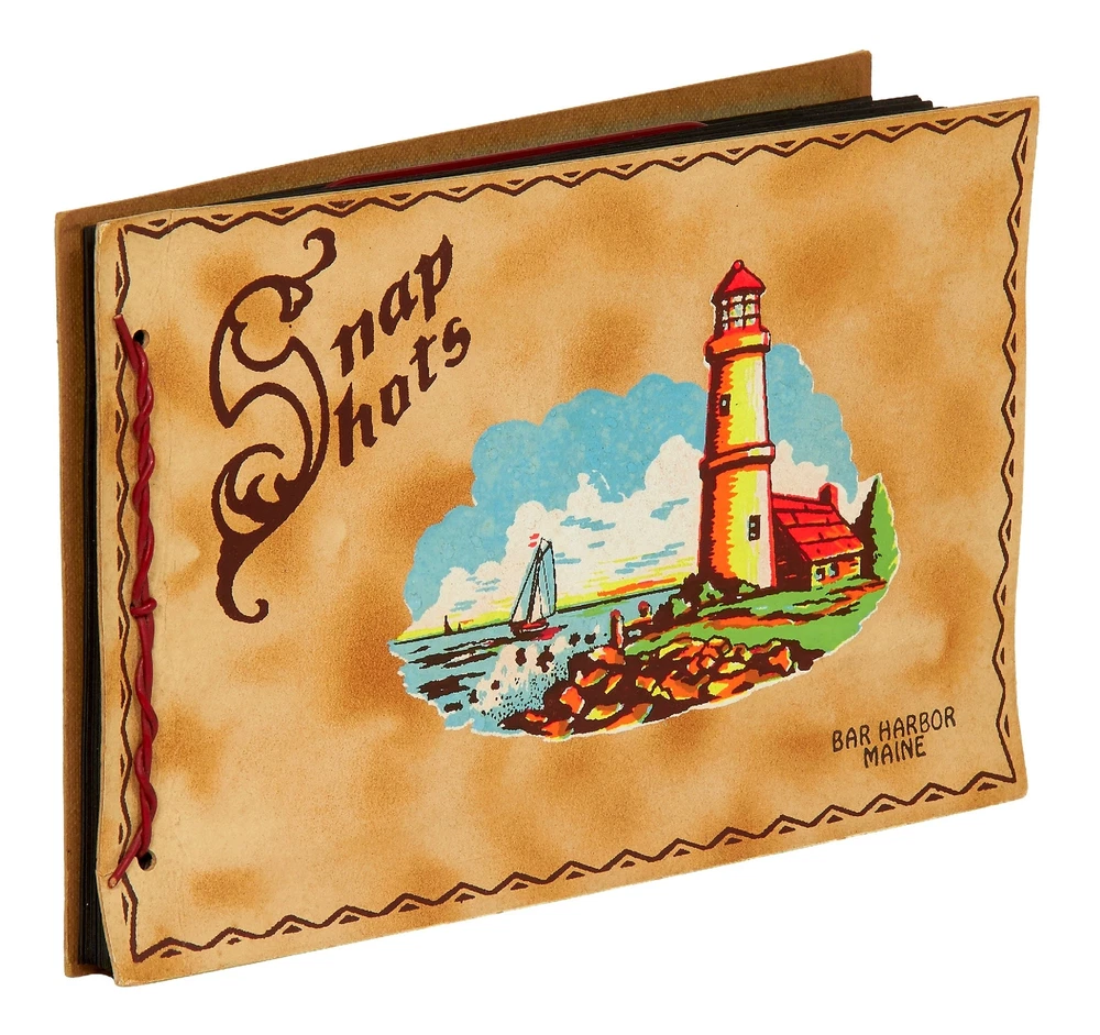 [Photo Album]: Snap Shots Bar Harbor Maine Title: [Photo Album]: Snap Shots Bar Harbor Maine Publication: Bar Harbor, Maine: 1916 Description: Softcover. Oblong octavo measuring 8.5" x 5.5". String-tied tan leather over paper boards with a seaside illustration and "Snap Shots Bar Harbor Maine" on the front wrapper. Contains 54 sepia-toned or black and white gelatin silver photographs measuring between 1" x 2" and 3.5" x 5.5" without captions. Near fine photo album with very slight creasing with near fine photographs. A collection of photos of the Bar Harbor Maine area around 1916. The album begins with photographs of a group of girls camping by a lake. There are numerous nature photographs of the lake and surrounding forest as well as a group photo of the girls in front of their tent. The girls are also seen enjoying activities around the lake including swimming and canoeing. There are a few action shots of girls diving into the lake. Later in the album there are photos of the town and a procession of men in straw hats and women in white dresses parading through a field. A few photos show a fishing trip, one with a woman in waders holding a fishing rod and another showing the group with the catch of the day. One small group of photos shows a winter scene in the area and the album ends with a landscape photo from the peak of a small mountain. An interesting collection of photographs depicting Maine women enjoying nature. Seller ID: 404903 Subject: Ephemera, Photography Between the Covers Between the Covers has been selling books for more than 30 years. Today we offer a wide ranging inventory, from Modern First Editions to General Used Books to Rare Archival Collections. We are active members of the Antiquarian Booksellers' Association of America (ABAA) and the International League of Antiquarian Booksellers (ILAB) . Terms All orders ship within two business days. Standard mail is USPS Media Mail. Expedited and international shipping are also available. We offer combined shipping on multiple orders. All books are guaranteed to be as described or they may be returned within 30 days of receipt for a full refund. This listing was created by Bibliopolis.