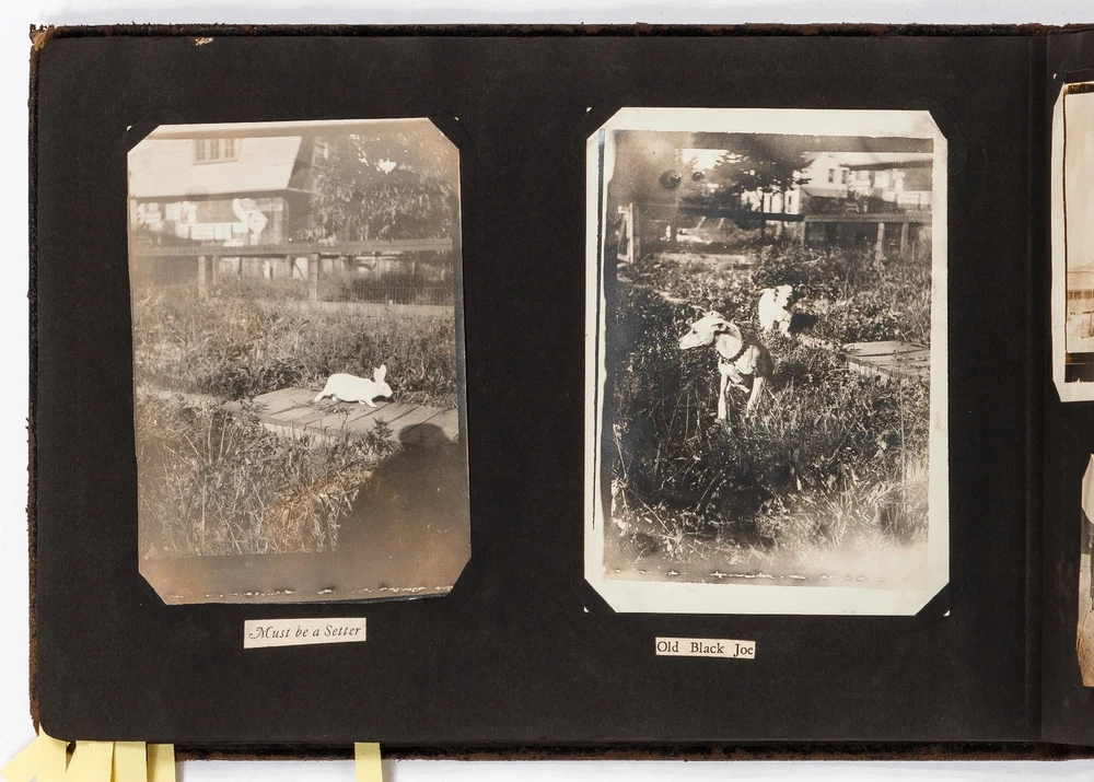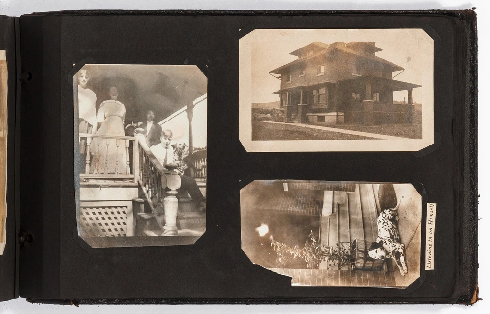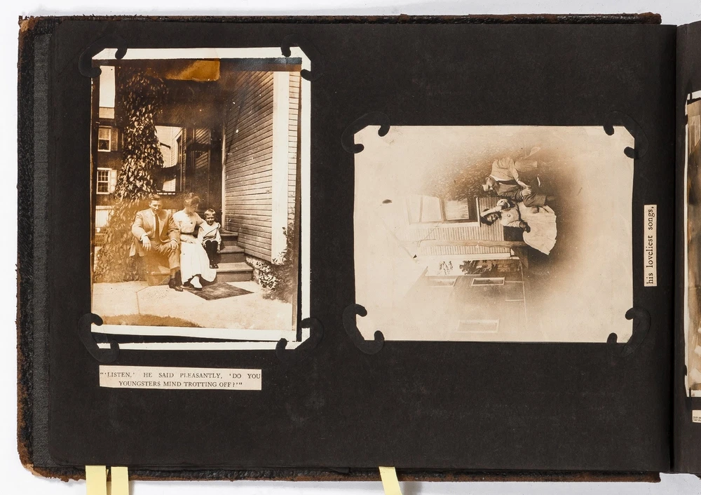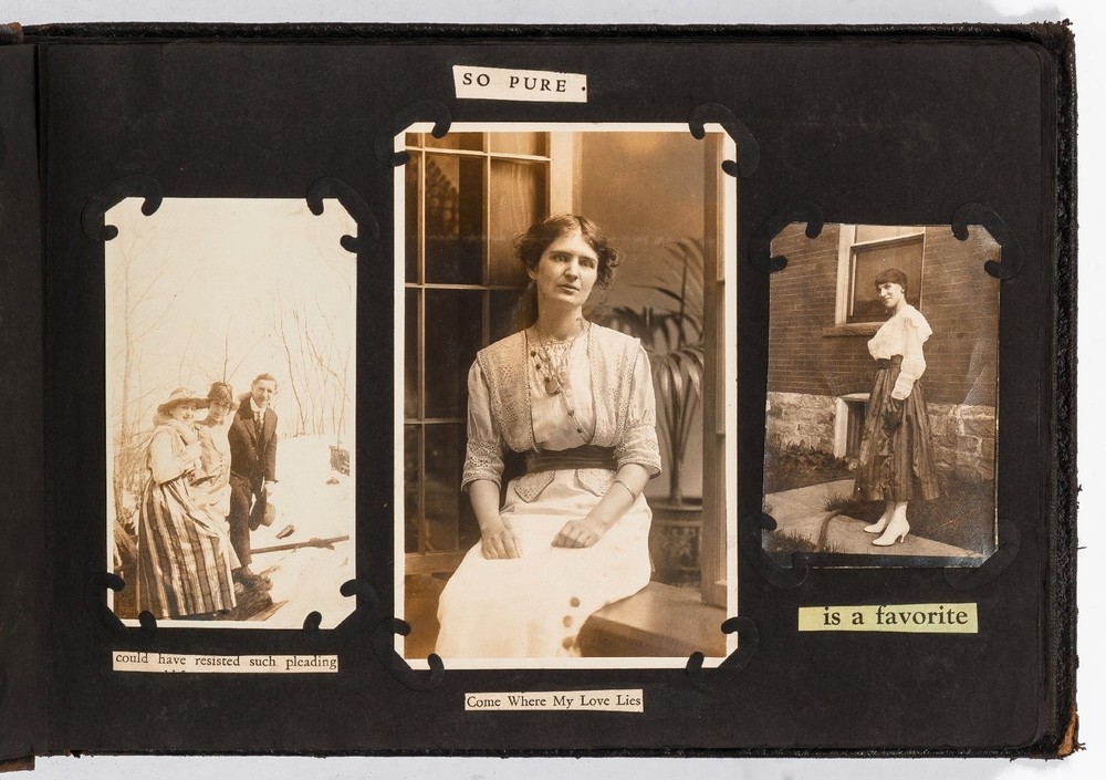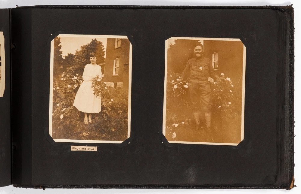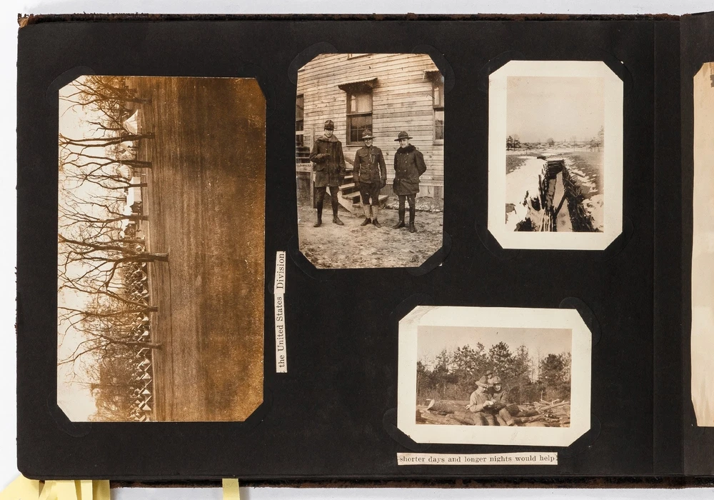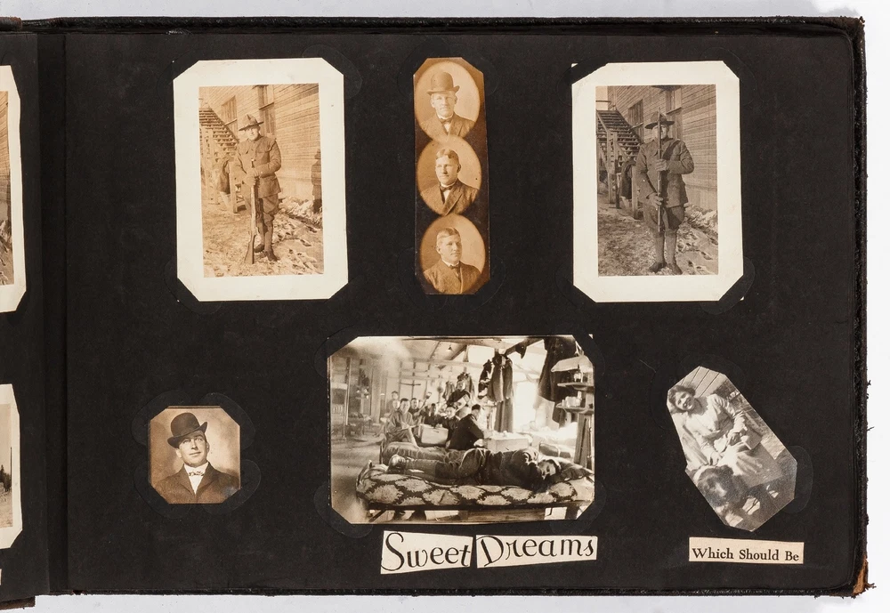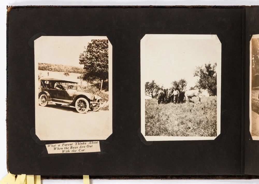 (Photo Album): Soldier's Photo Album from Before, During, and After World War II Title: (Photo Album): Soldier's Photo Album from Before, During, and After World War II Publication: Paris, France: [circa 1930-1950] Description: Softcover. Oblong quarto measuring 11.5" x 7". String tied black leather flexible boards with "photographs" embossed in gilt. Contains 264 gelatin silver black and white or sepia toned photographs measuring between 1.5" x 1" and 8.5" x 6.5" with some captions. Bumped spine ends and corners with some light wear on the leather, about near fine with near fine lightly faded photographs. A young man's photo album from before, during, and after World War II, circa 1930s-1950s. Newspaper and magazine cut outs are used to caption certain photographs, "This album is a real monument." A page is dedicated to a young woman captioned, "come where my love lies," with pictures of the woman posing and smiling. In other photographs the couple can be seen affectionately holding each other in their arms. Many of the photographs also show the man's friends, in group photographs. There are real photograph postcards of family picnics as well with some regular family photographs including beach trips with pictures of swimsuits from the time frame. Several pictures of the man's family poodles, cats, and later pictures of pet birds are included as he really loved animals. There are pictures from Paris featuring the Eiffel tower and during the man's visit he takes pictures of past war barracks and old military paraphernalia. This may have sparked that man's interest to join the army during World War II. During his time in the war there are pictures of him with his infantry at base and training, one of which is captioned, "That's just my way of forgetting about you." There is one picture that shows dozens of beds outside covered in snow, completely empty. After returning home from war he has some later hunting photographs one of which shows a deer fully strung up and about to be skinned. He also can be seen working in a small goods store behind the counter with pictures of some of the food items and home goods he sold. His life after is mostly focused on his wife with a photograph of the two posed close together with her captioned, "attempted to kiss him," and, "take your time." A wedding photo of his wife in her dress is shown with a later picture of the couple together captioned, "And so, to bed." Some of the photographs feature accidental double exposures of the couple so that it looks like multiple couples are pictured in some of the shots. An interesting travel photo album belonging to a young man during the course, before, and after World War II. Seller ID: 424529 Subject: Ephemera, Photography Between the Covers Between the Covers has been selling books for more than 30 years. Today we offer a wide ranging inventory, from Modern First Editions to General Used Books to Rare Archival Collections. We are active members of the Antiquarian Booksellers' Association of America (ABAA) and the International League of Antiquarian Booksellers (ILAB) . Terms All orders ship within two business days. Standard mail is USPS Media Mail. Expedited and international shipping are also available. We offer combined shipping on multiple orders. All books are guaranteed to be as described or they may be returned within 30 days of receipt for a full refund. This listing was created by Bibliopolis.