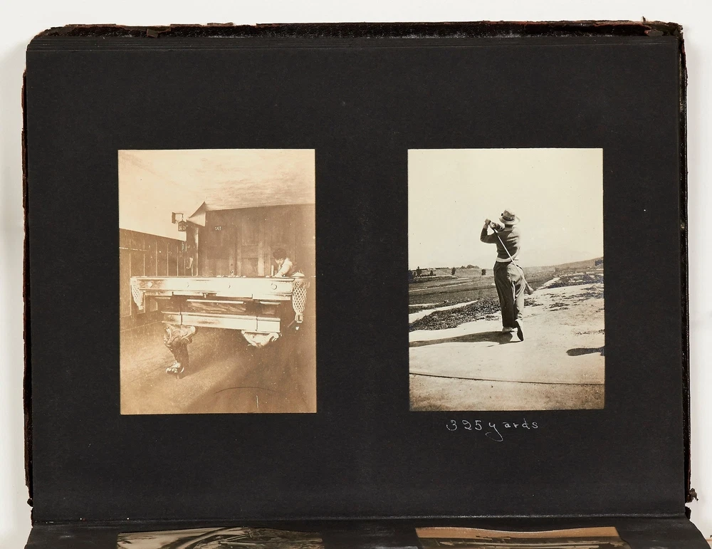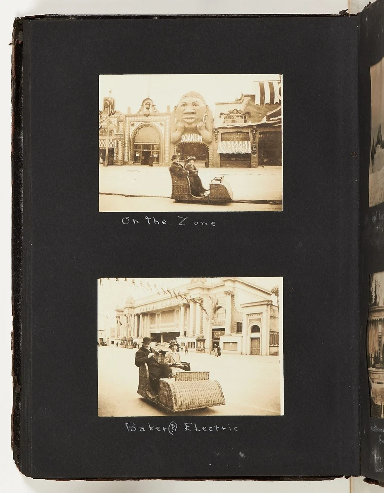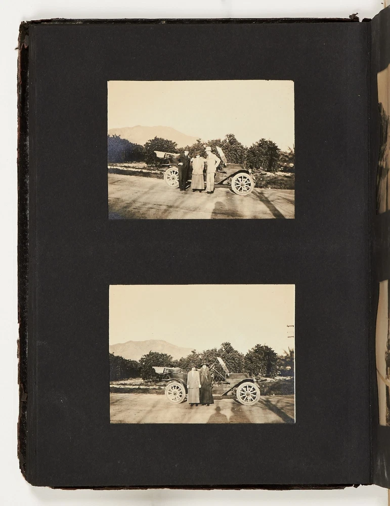 [Photo Album]: Tour of California and the American West. 1915 Title: [Photo Album]: Tour of California and the American West. 1915 Description: Softcover. Quarto album. Brown leather over flexible card covers with "Photographs" in gilt. 76 gelatin silver sepia-toned snapshot photographs. Uniformly sized at approximately 4" x 3". Most of the images are readably captioned in white, although there is some smudging and a few have worn away or are illegible. Some erosion to the leather on the spine, modest spotting on the boards, very good; internally the images are very good or better. The album depicts a tour of California, and peripherally through the West. The journey commences in New Orleans with a photo of a well-dressed woman standing on the steps of a train caboose, progresses through Texas where it shows an encampment of U.S. soldiers at Alpine, Texas, continues onto "Squa[w]s at Yuma, Arizona," and reaches California, arriving at Los Angeles. The photographs jump around a bit geographically, and include a brief jaunt to Tijuana, Fairmount Park in Riverside, and showing two women posing before lemon, orange, and almond trees, a bird's-eye view of Pasadena from Mt. Lowe, as well as of the women bathing at the beach, playing billiards, and golfing. Additionally there are several images taken at the San Diego Exposition, including several of the women feeding pigeons from a wicker rolling cart, as well as a trip to Catalina Island. Additionally there are some motoring photos of the women working their way up to Carmel, with photos taken from and of the Carmel Tower, of giant redwoods, and of the Lick Observatory in San Jose, of Hearst Memorial Greek Theatre at Berkeley, and finally several taken of the Panama Pacific International Exposition in San Francisco (this time they are pictured in a Baker Electric Wicker rolling cart). The last few are of Barstow, Williams, Arizona, and the Grand Canyon, presumably on the return trip. As both the San Diego and Pan Pacific Expositions were held in 1915, we are reasonably confident of the 1915 attribution. A pleasing album with interesting and nicely composed images of a tour of California. Seller ID: 395830 Subject: Americana, Photography Between the Covers Between the Covers has been selling books for more than 30 years. Today we offer a wide ranging inventory, from Modern First Editions to General Used Books to Rare Archival Collections. We are active members of the Antiquarian Booksellers' Association of America (ABAA) and the International League of Antiquarian Booksellers (ILAB) . Terms All orders ship within two business days. Standard mail is USPS Media Mail. Expedited and international shipping are also available. We offer combined shipping on multiple orders. All books are guaranteed to be as described or they may be returned within 30 days of receipt for a full refund. This listing was created by Bibliopolis.
