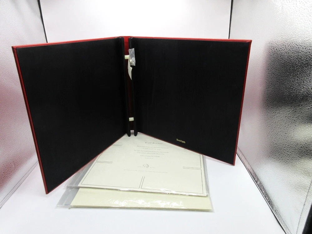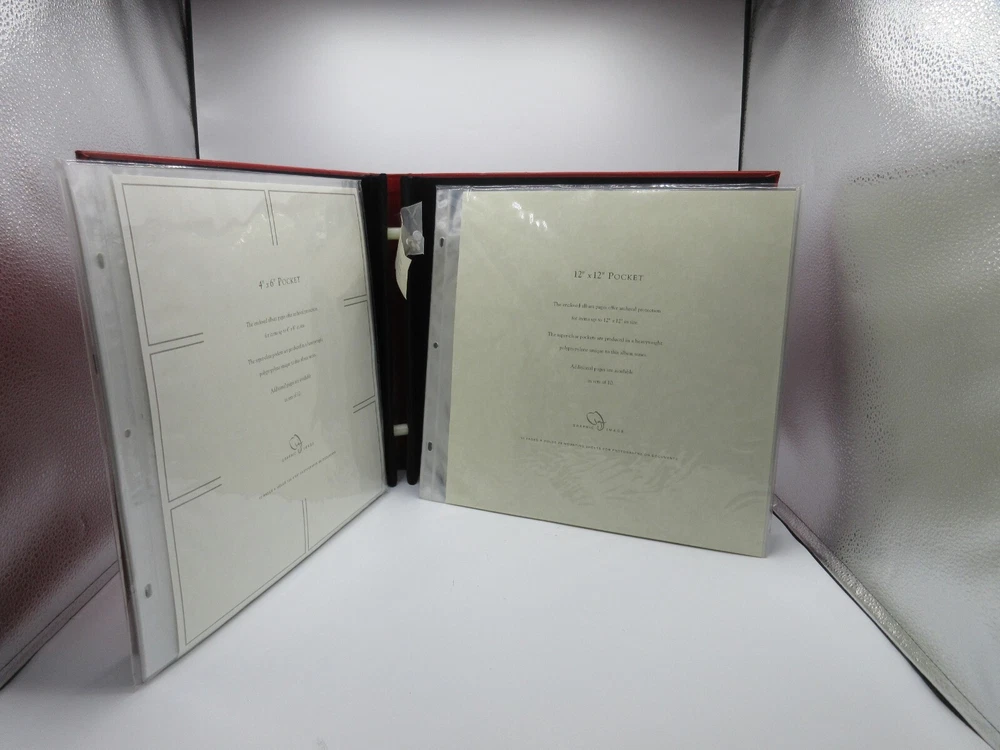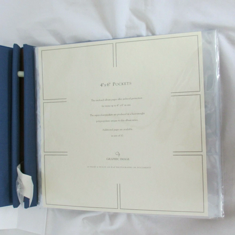 New Graphic Image for Swoozie's XXL fine quality photo album to hold your treasured memories. Cover is smooth leather Interior features archival quality polypropylene pages that are heavy weight and super clear. Pages won't wrinkle or harm photos. Post bound. Screw in pages. Ships with one set of 10 pages which holds up to 120, 4" x 6" prints. Each page holds six photographs , horizontal. Album cover measures 13-1/2" x 15"