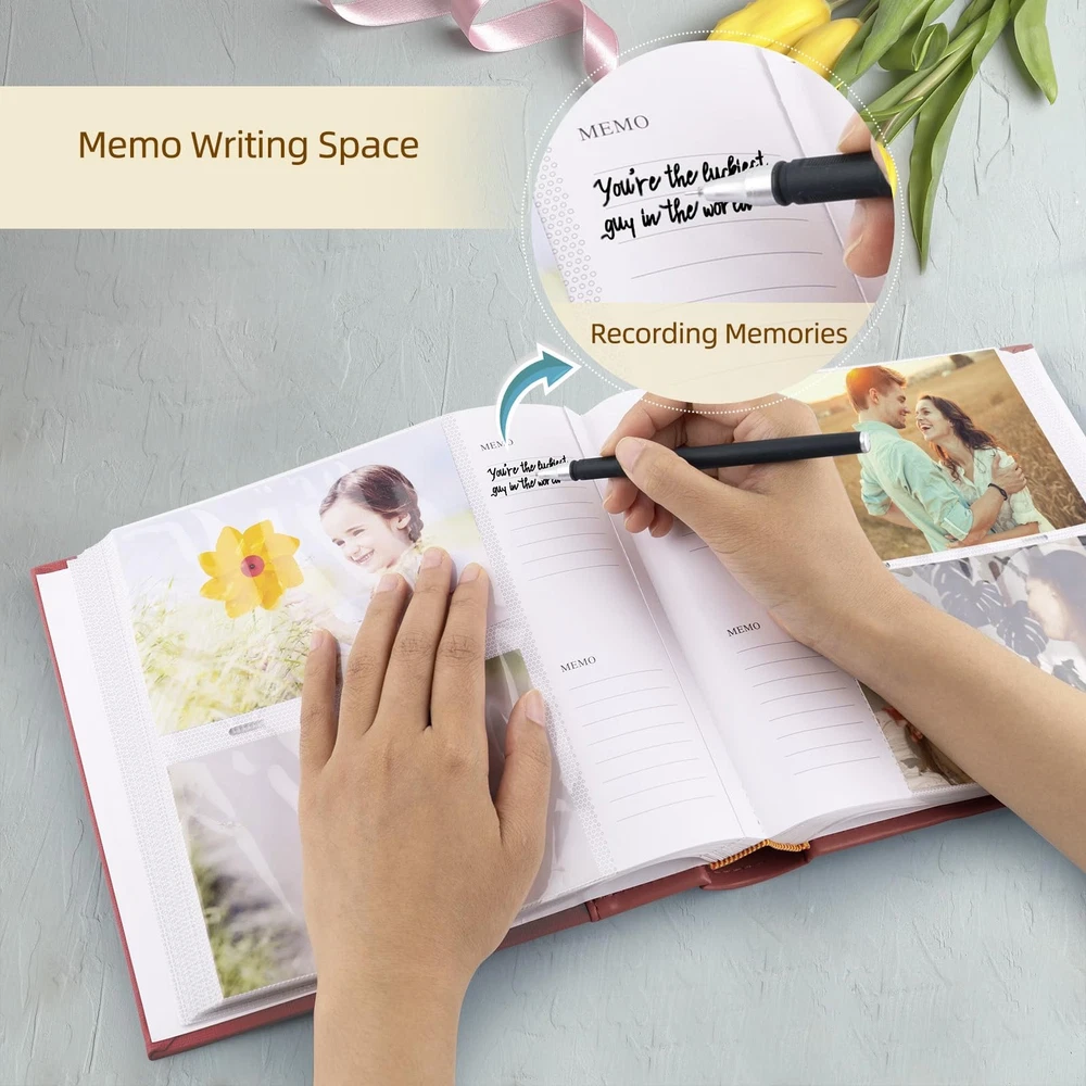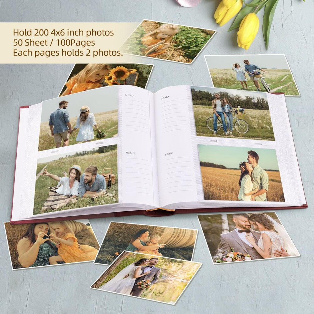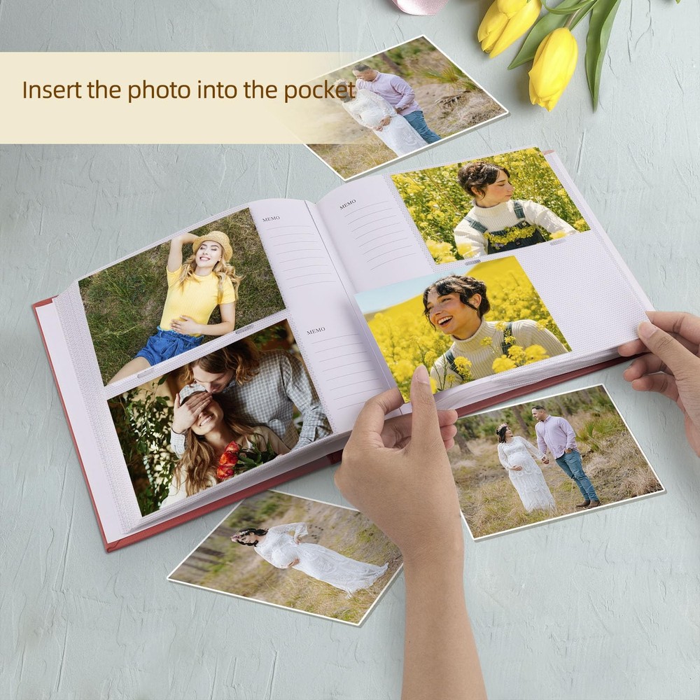 This 4x6 photo album features sharp features, double memo space per page, and a clear PP inner pocket cover to protect memories. The inner pages are acid-free and PVC-free to ensure that the photos are as clear as ever. High quality leather cover is comfortable to touch, durable and unbreakable. Ideal for organizing and displaying photos and artwork, perfect for sharing happy memories. Holds up to 200 4"x 6" photos with 2 memo writing spaces on each page.Total 100 pages. The inner pages are crafted with acid-free and PP materials for enduring protection. Premium faux leather cover with delicate floral pattern. Personalized keepsake of your unique journey. Exceptional after-sales service for a smooth and enjoyable experience. A great gift for baby shower,graduation.wedding.Christmas,new year etc.