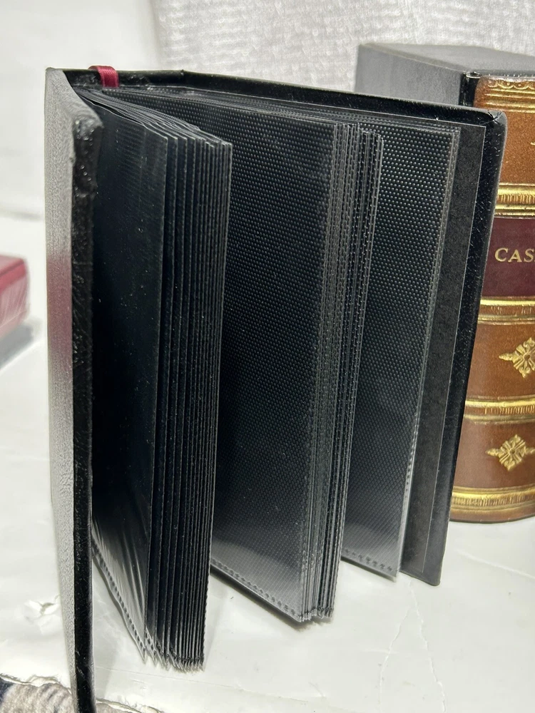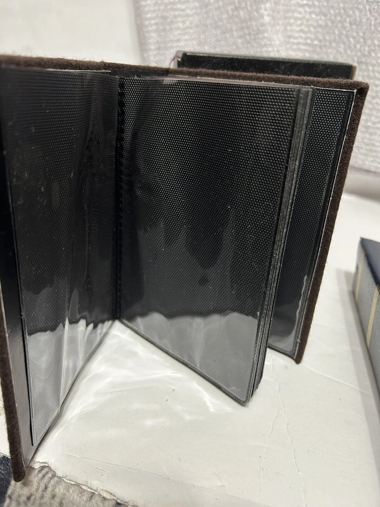 There are 5sets of albums: red and blue still sealed 4X6 Blue leather bonded album has been opened never used 3X5 , ringer. This opens up the plastic to hold double the pictures. Brown felt album opened un-used 4X6, holds a ton of pictures. Book cover hiding photo album opened,4X6, in- used. This holds a lot of photos. Very nice ribbon to pull album in & out. Please refer to the pictures, All are excellent condition. GOD BLESS YOU, Judy 💕