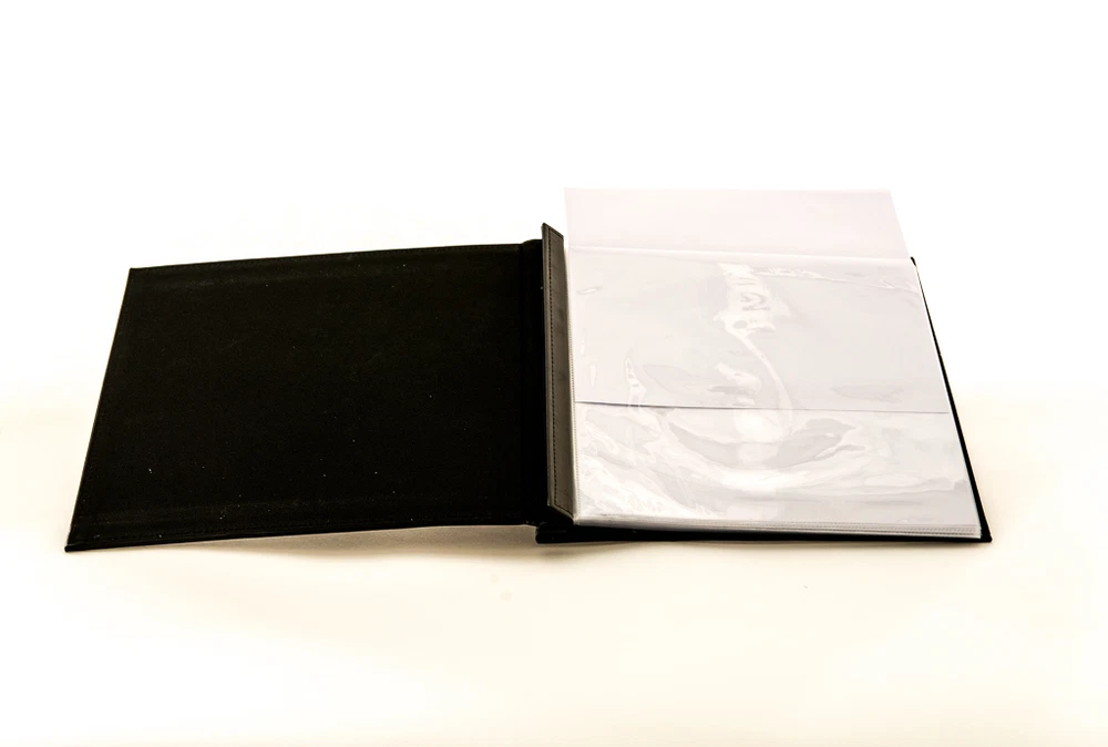 This Black Leather Photo Album is Picture PERFECT for your Photo Booth event. It can also be used as a scrapbook for any OCCASION . Just add your photo booth picture strips and your own creative touches. Your guest can write a message by their picture to create a lasting memory of your Photo Booth rental. You can add or remove additional acid, lignin and pvc pages as needed. This Photo Booth album has 12" x 12" pages. 25 top loading pages included inside. That is 50 layouts. So there is no need for replacement pages. Post Bound Acid, Lignin and PVC free White inner pages