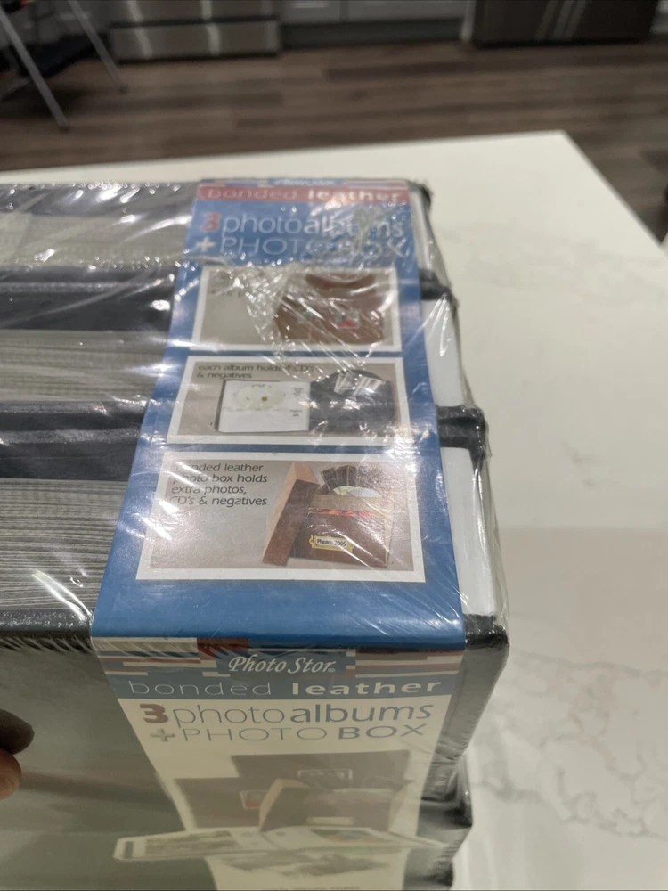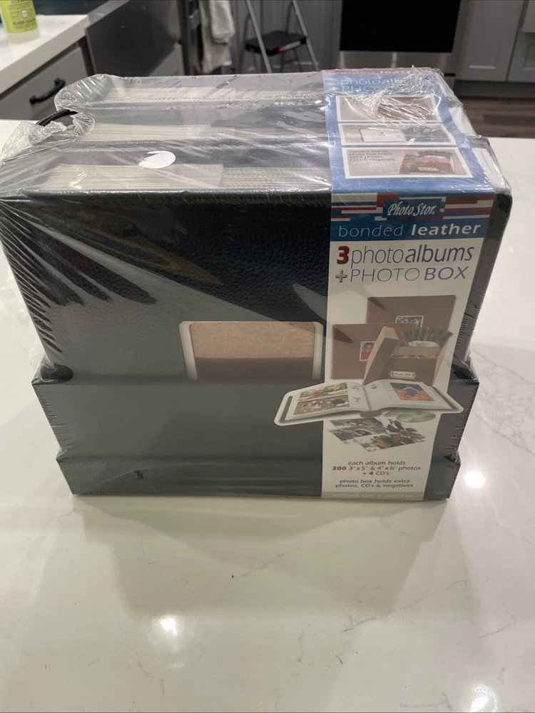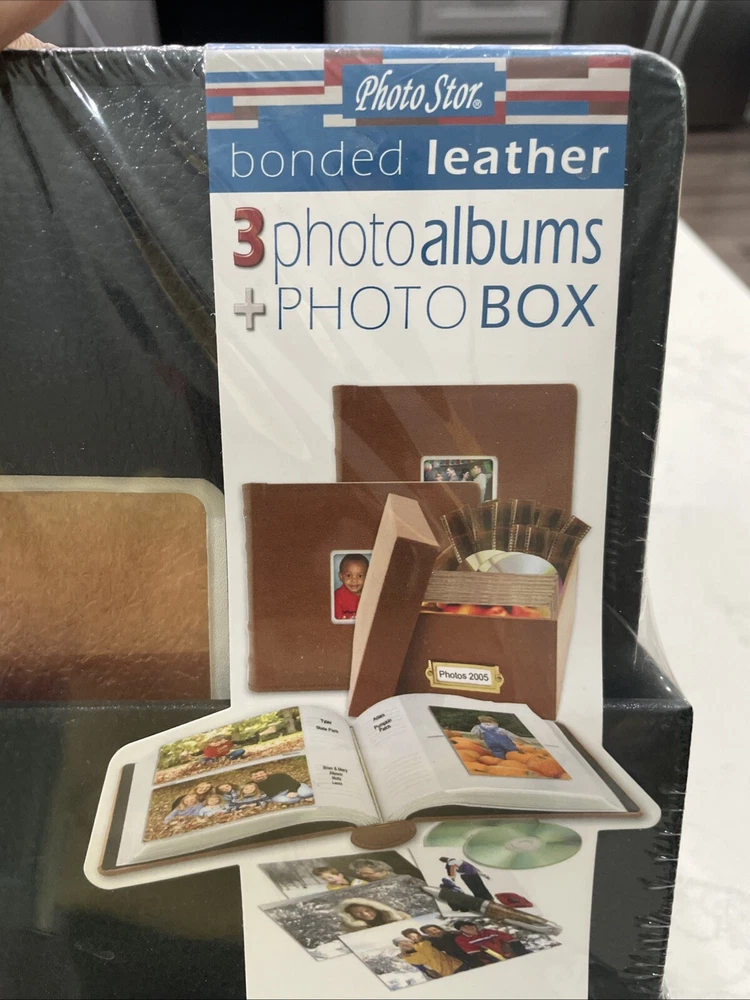 Photo Stor 3 Bonded Leather Photo Albums + Photo Box Model #24674-C Black NIB New Plastic is coming off from storage. Please check pictures